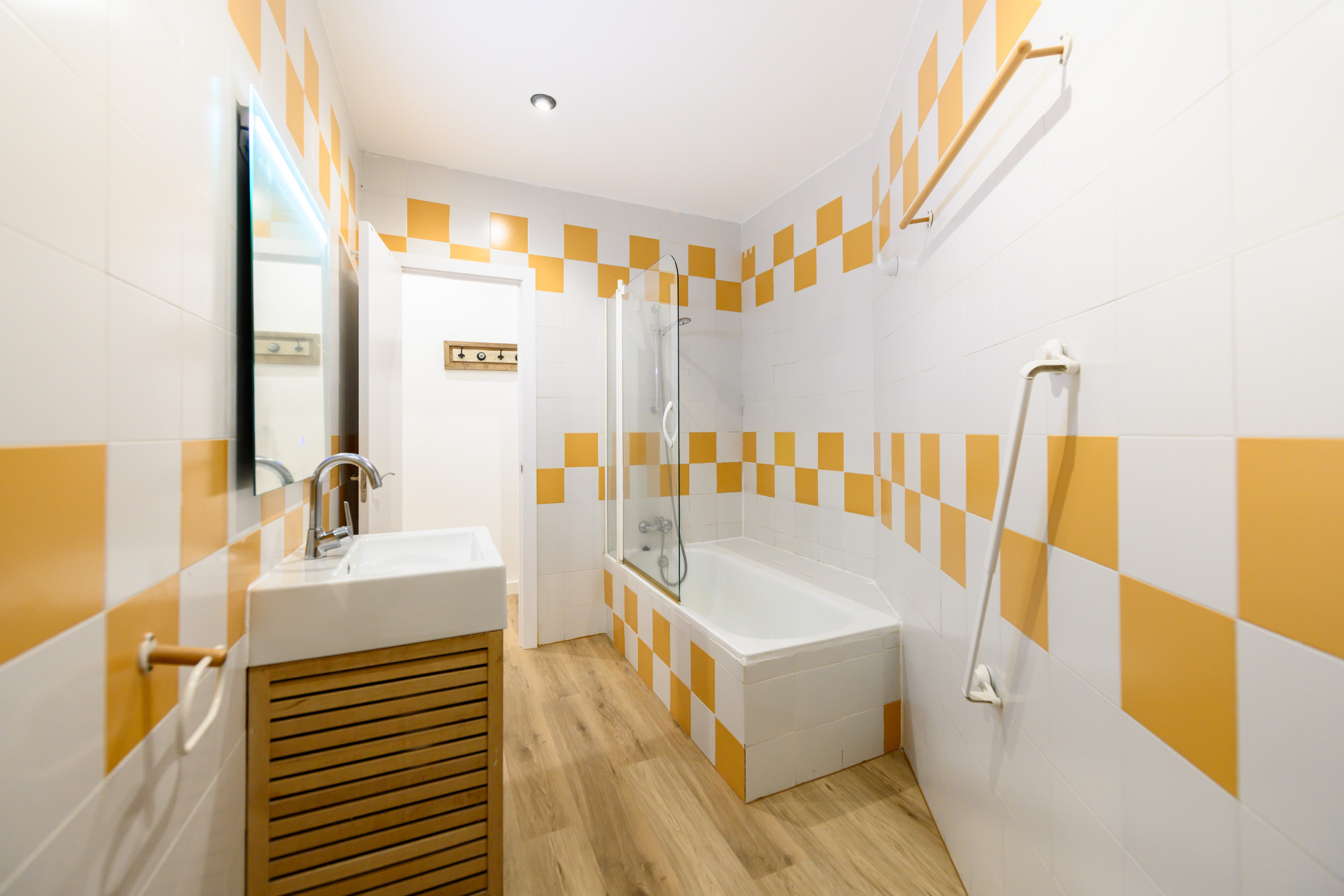 • Baño completo: WC, ducha, bañera, bidé, espejo y zona de almacenaje.
