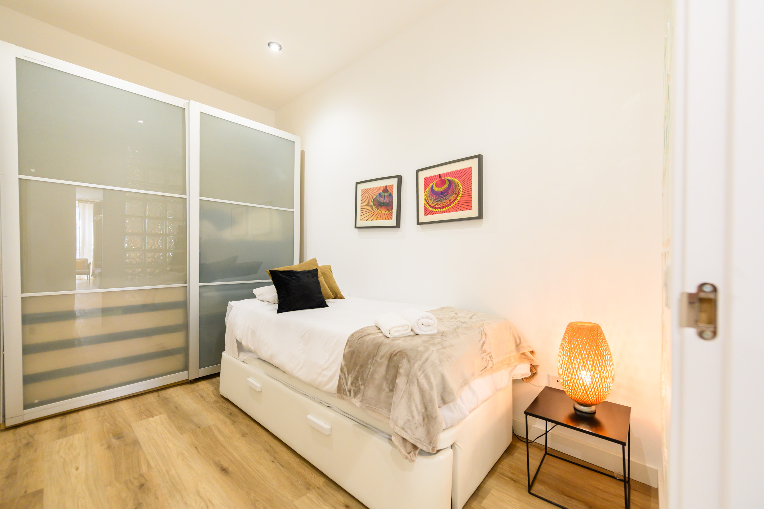 • Dormitorio 1: Cama nido (dos camas individuales) y amplio armario.