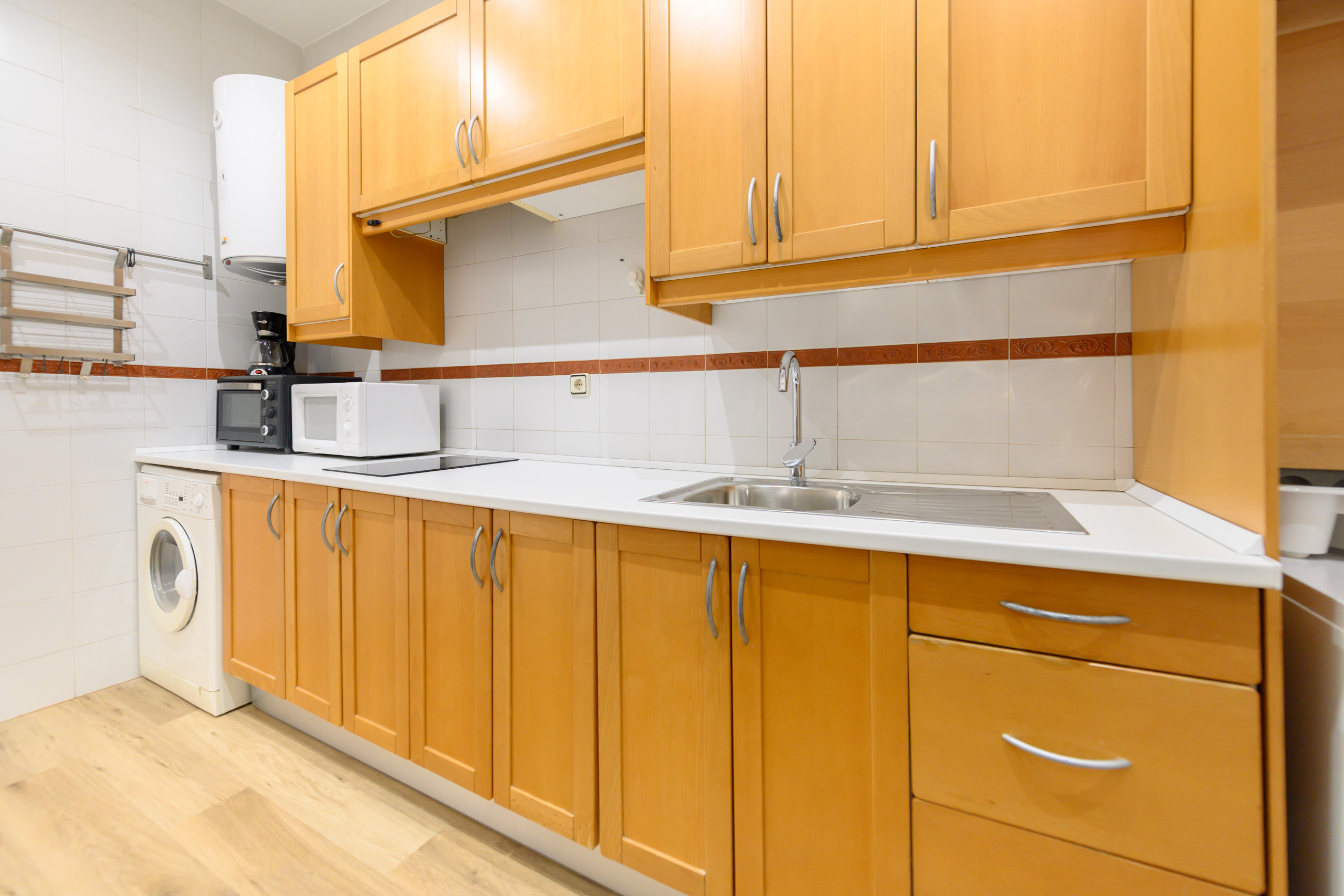• Cocina totalmente equipada: Frigorífico, microondas, lavadora, lavavajillas, utensilios de cocina y amplio espacio de almacenamiento.