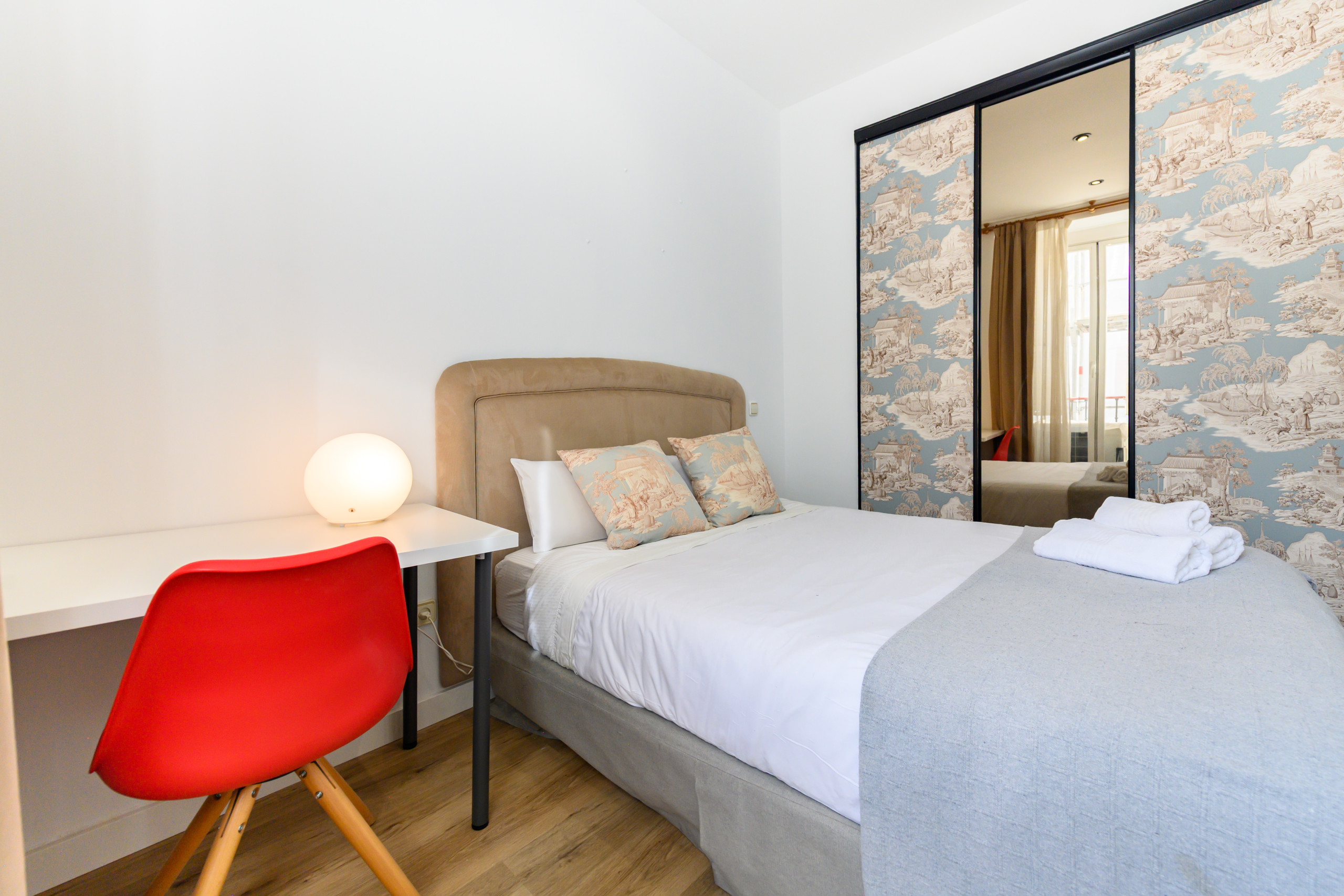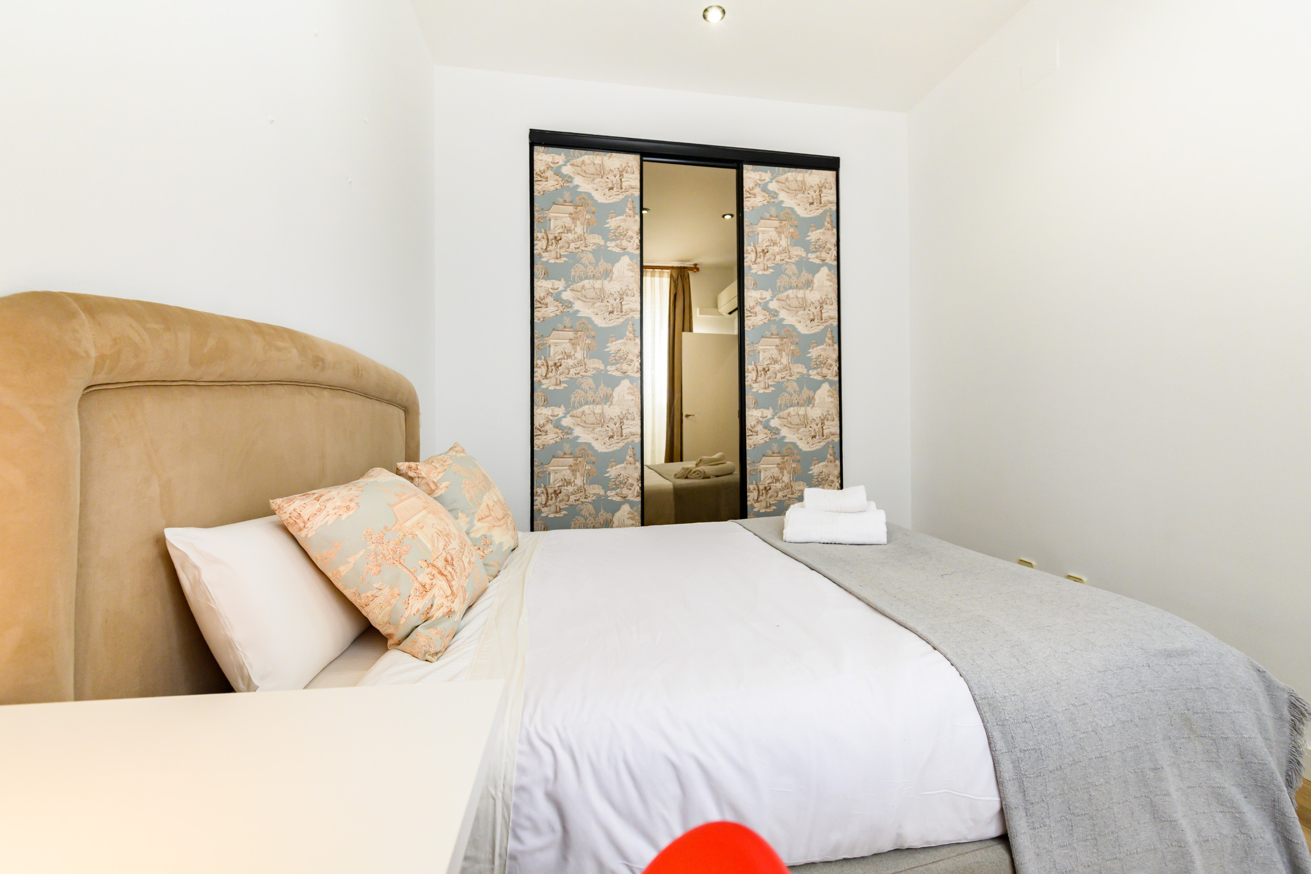 • Dormitorio 2: Cama doble, armario empotrado, espejo, aire acondicionado, escritorio y gran ventana con excelente luz natural.