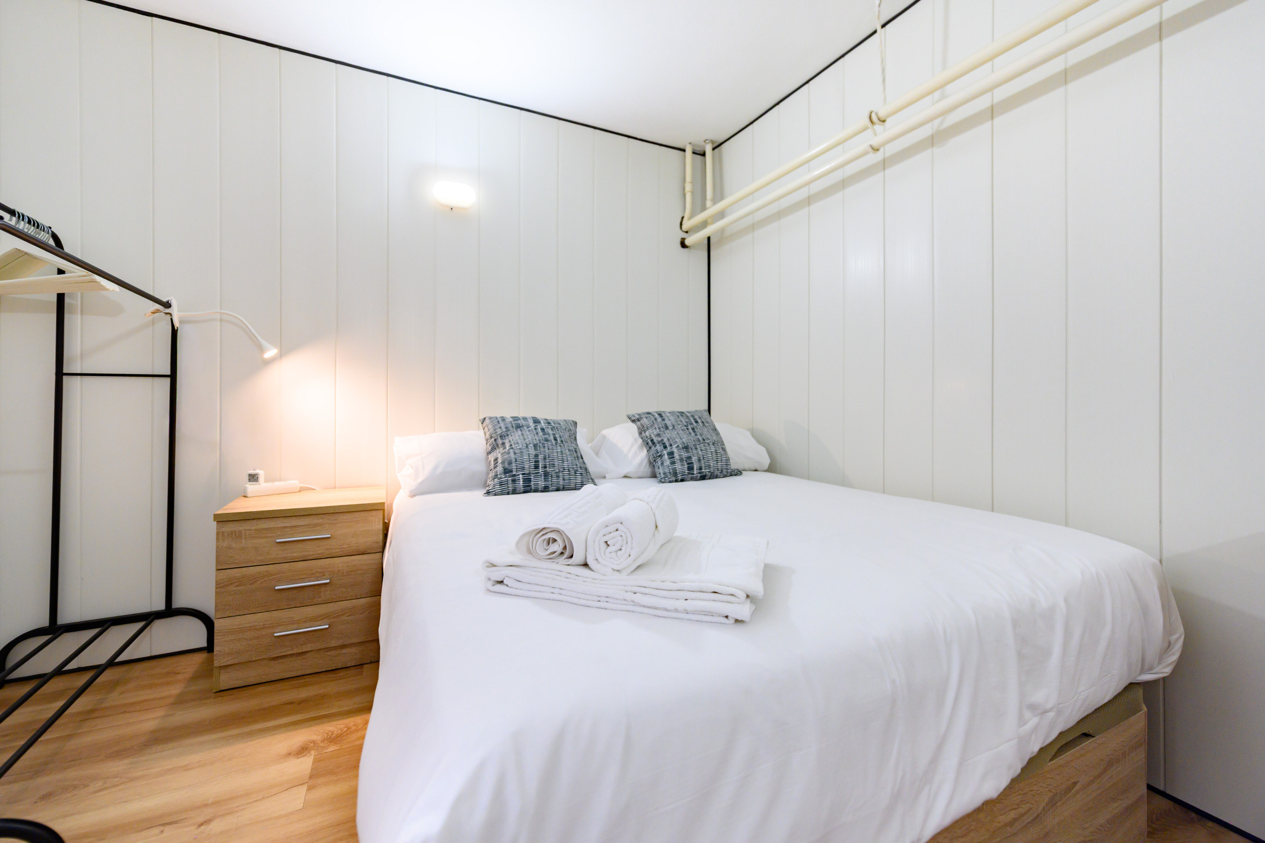 • Tercer dormitorio con cama doble, mesa de noche y perchero.