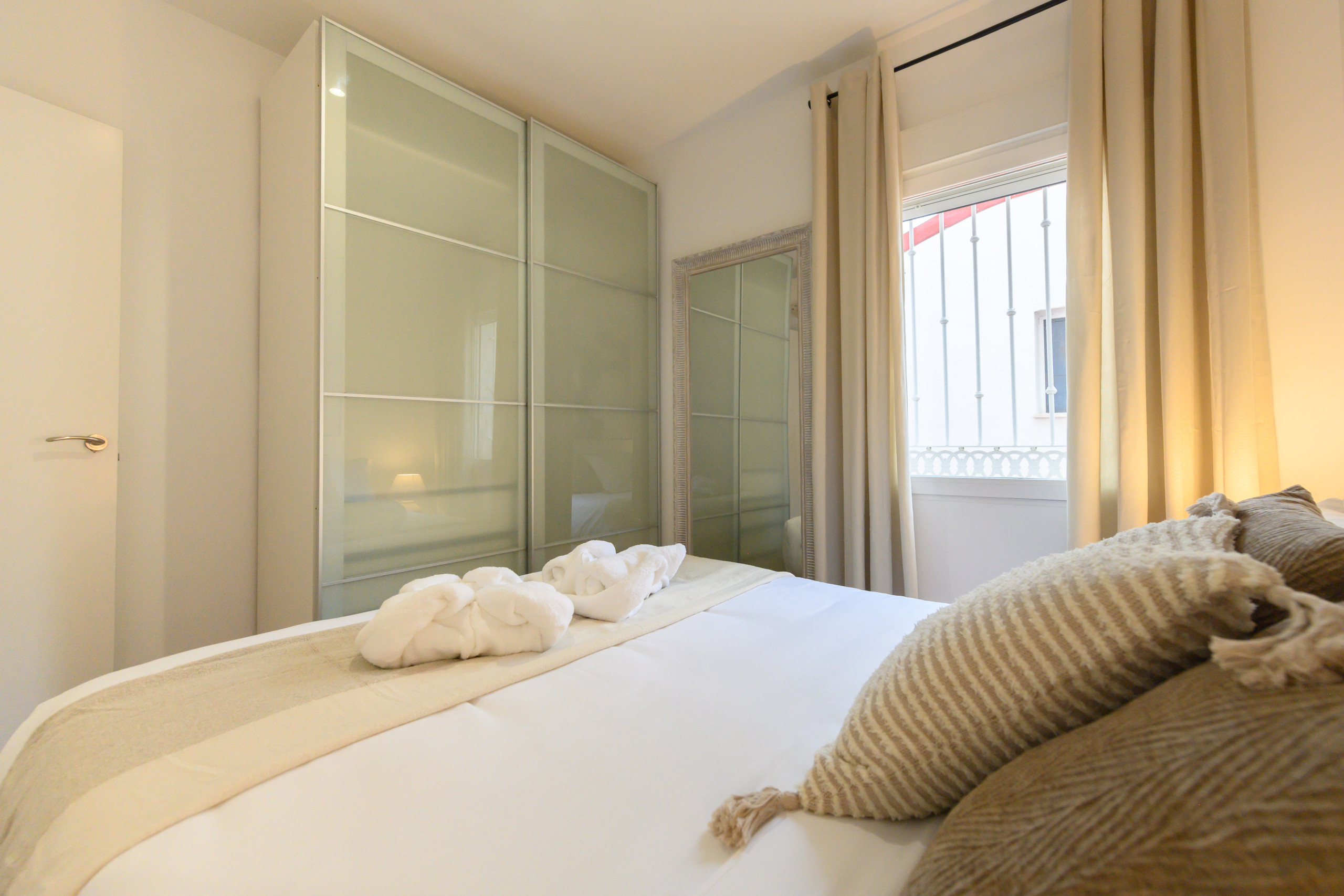 Dispone de dos dormitorios, ambos equipados con camas dobles, aire acondicionado y armarios amplios, ofreciendo confort y capacidad de almacenamiento.