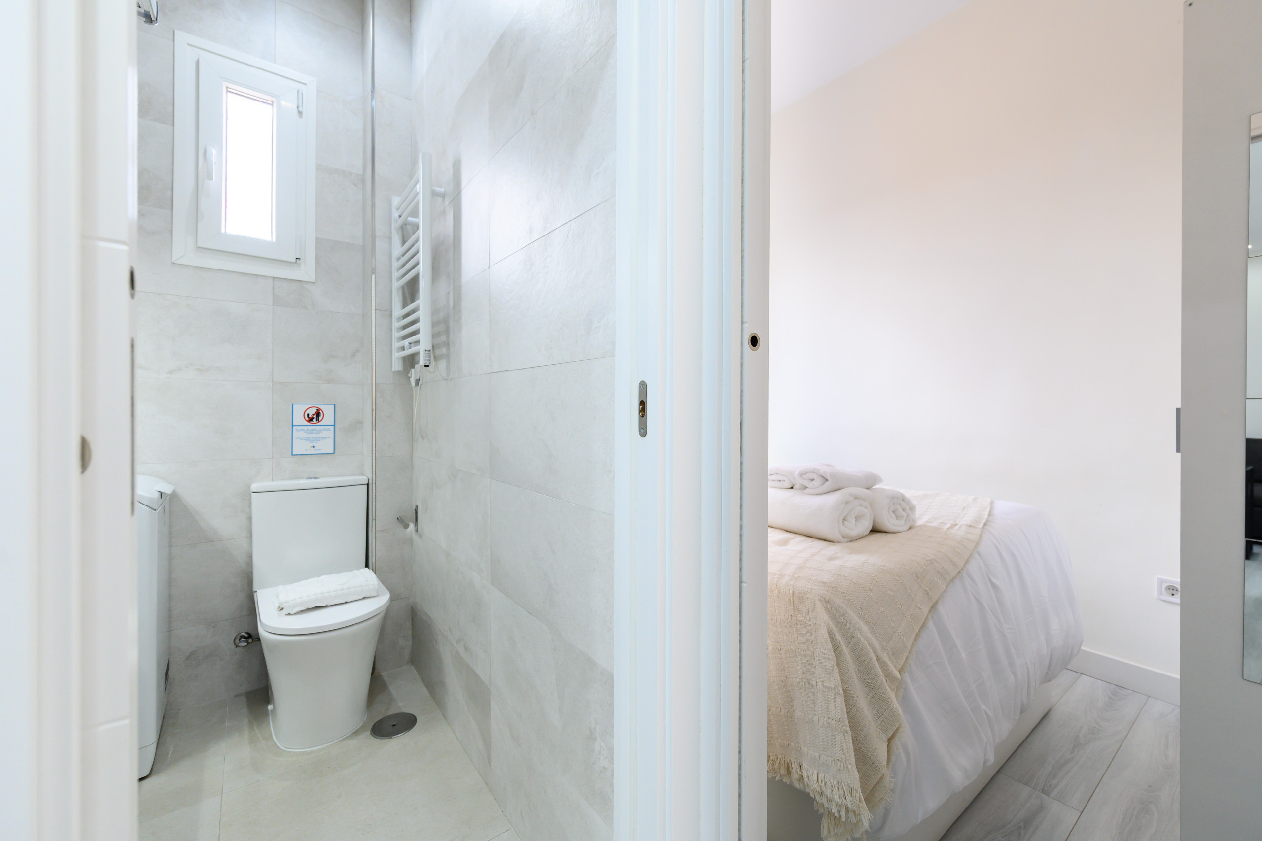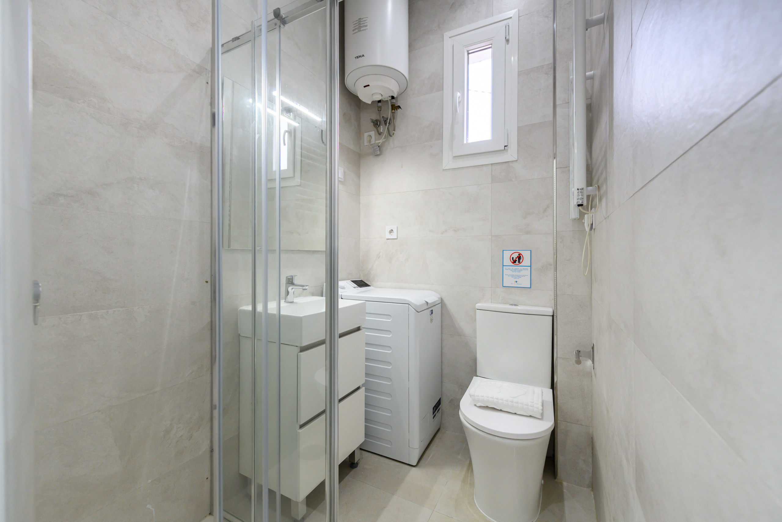 • Baño completo: WC, ducha, espejo, lavadora y espacio de almacenaje.
