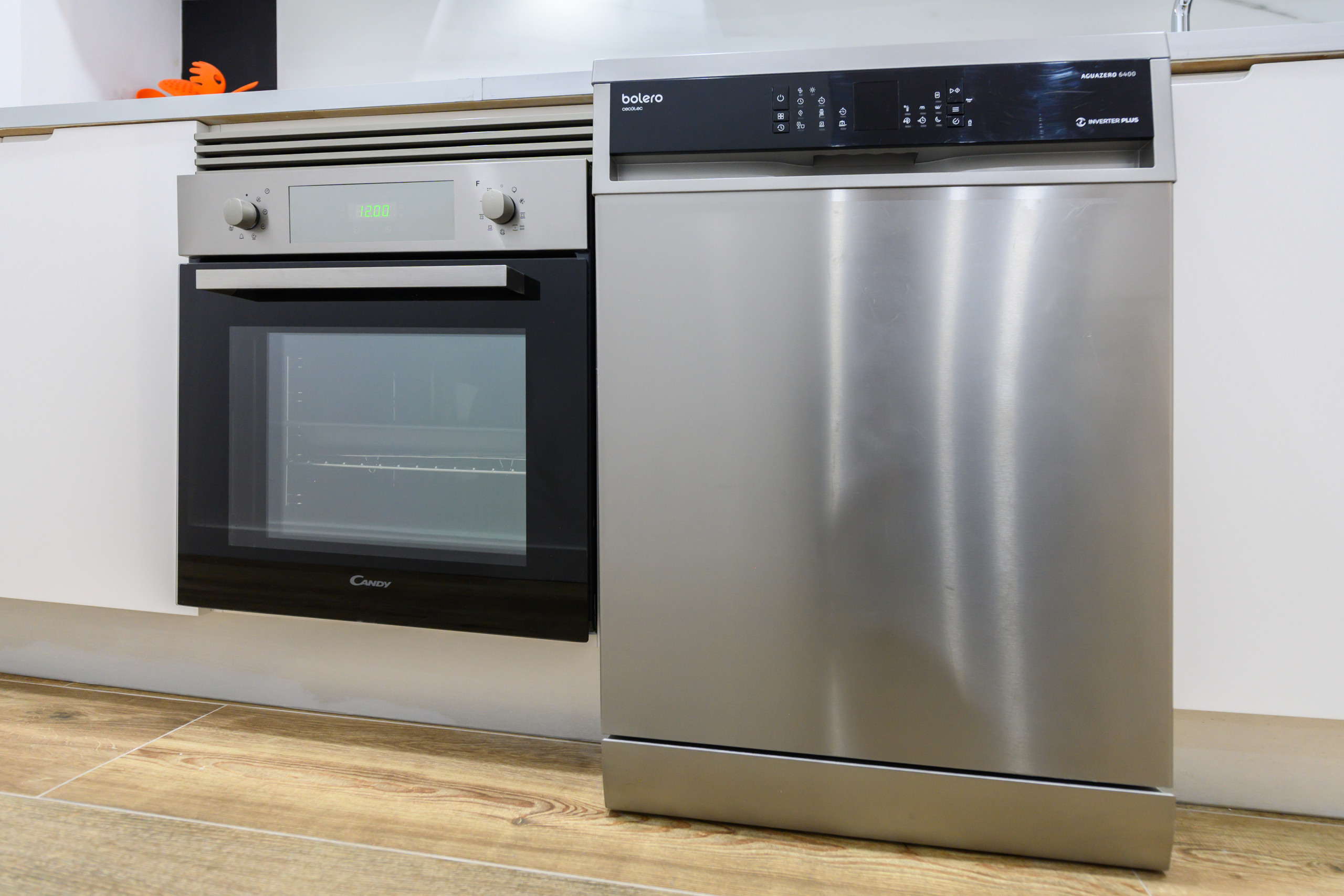 Cocina americana completamente equipada con lavadora, horno, lavavajillas y nevera, perfecta para preparar tus comidas favoritas con total comodidad.