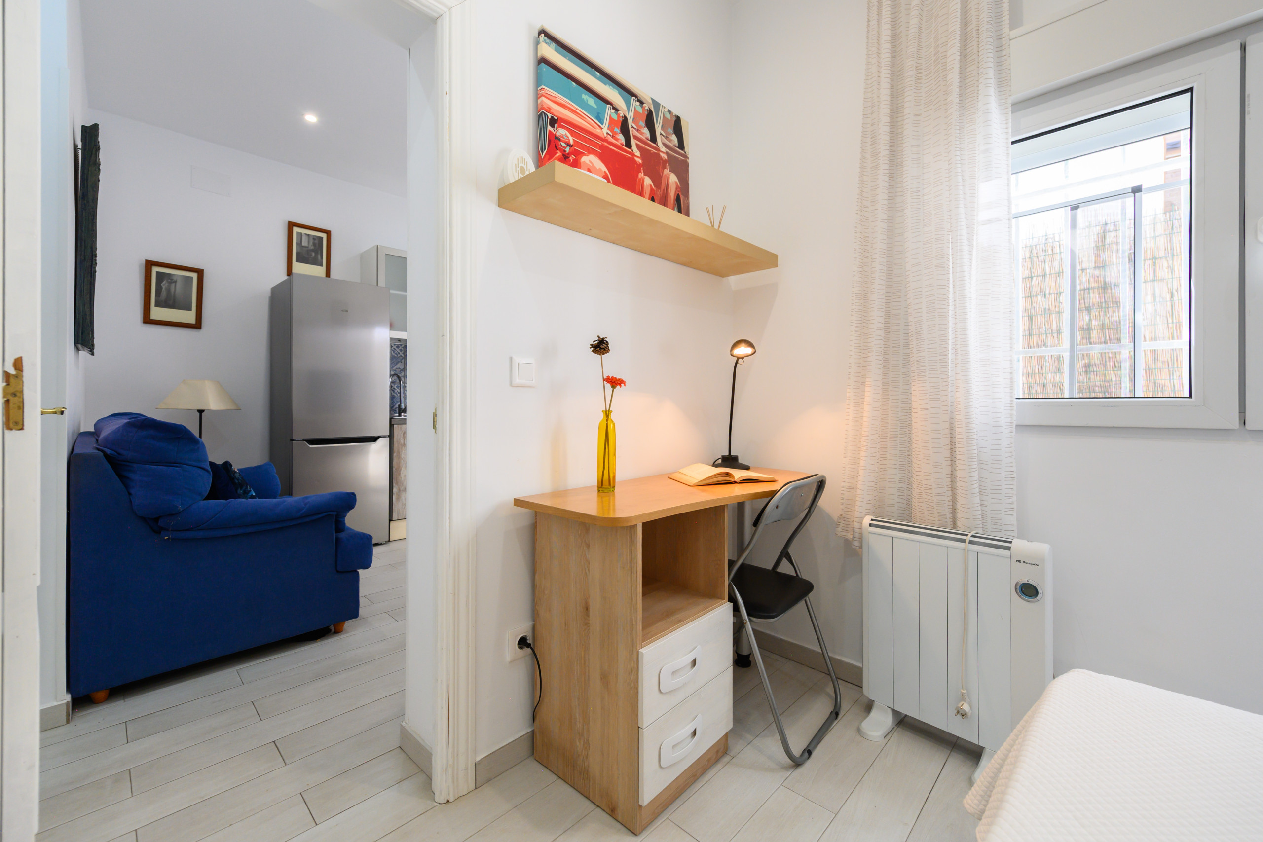 • Dormitorio: equipado con cama doble, escritorio para trabajar o estudiar y un armario no empotrado, ofreciendo funcionalidad y comodidad.