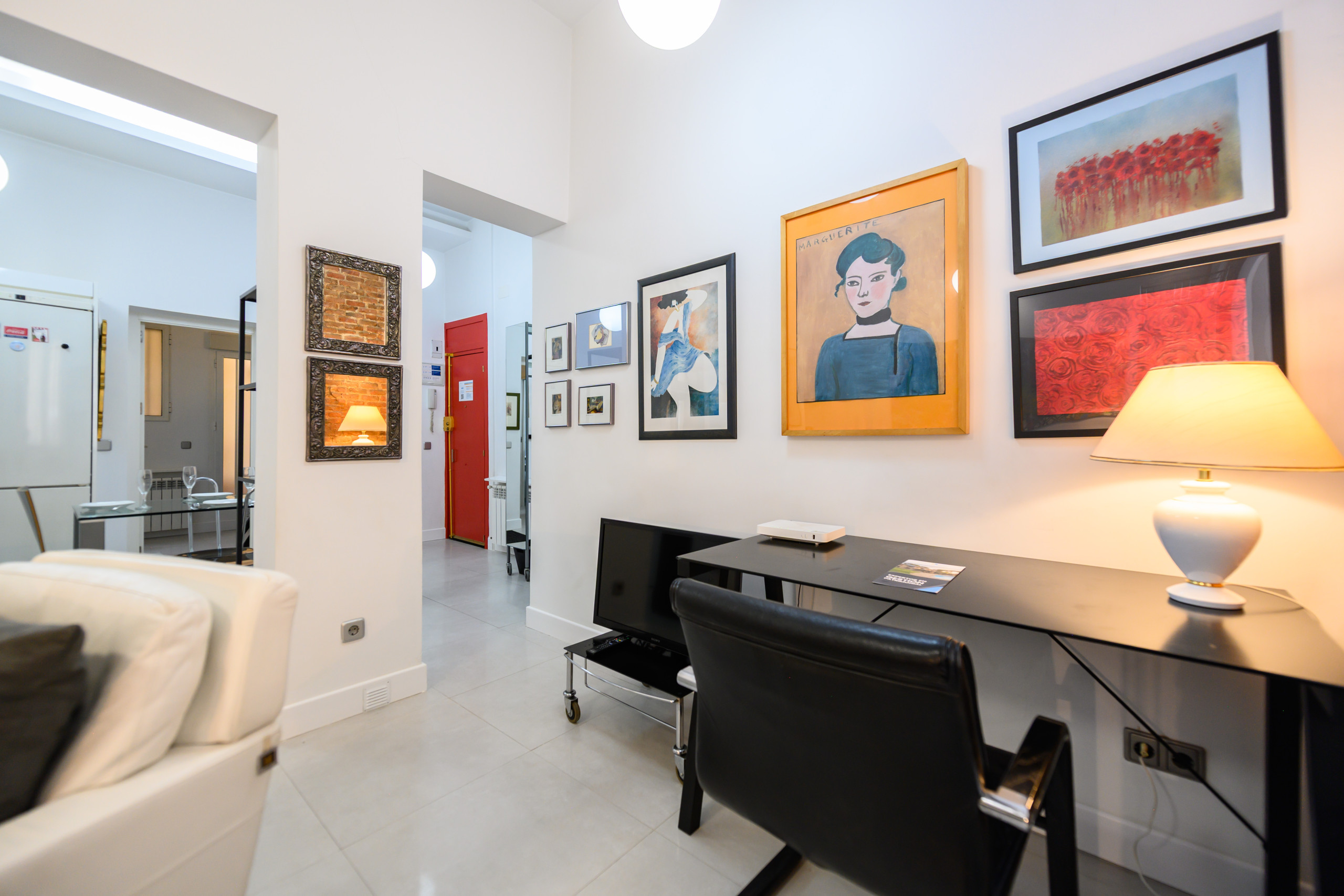 - Luminoso salón con sofá, sillón, TV, escritorio ideal para teletrabajo, calefacción y ventanas con vistas al exterior que aportan abundante luz natural.