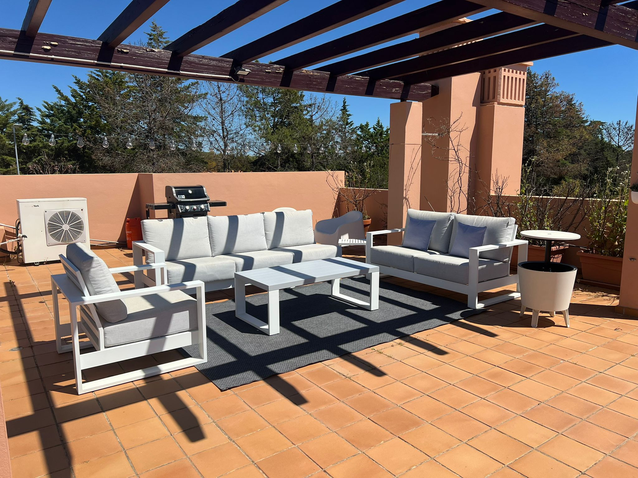 La propiedad cuenta con un amplio balcón donde podrás cenar con vista a la piscina, así como una exclusiva terraza en la zona superior, donde querrás terminar tus días relajándote. Tiene garaje y se puede disfrutar de una magnífica vista a la piscina y al espacio al aire libre.