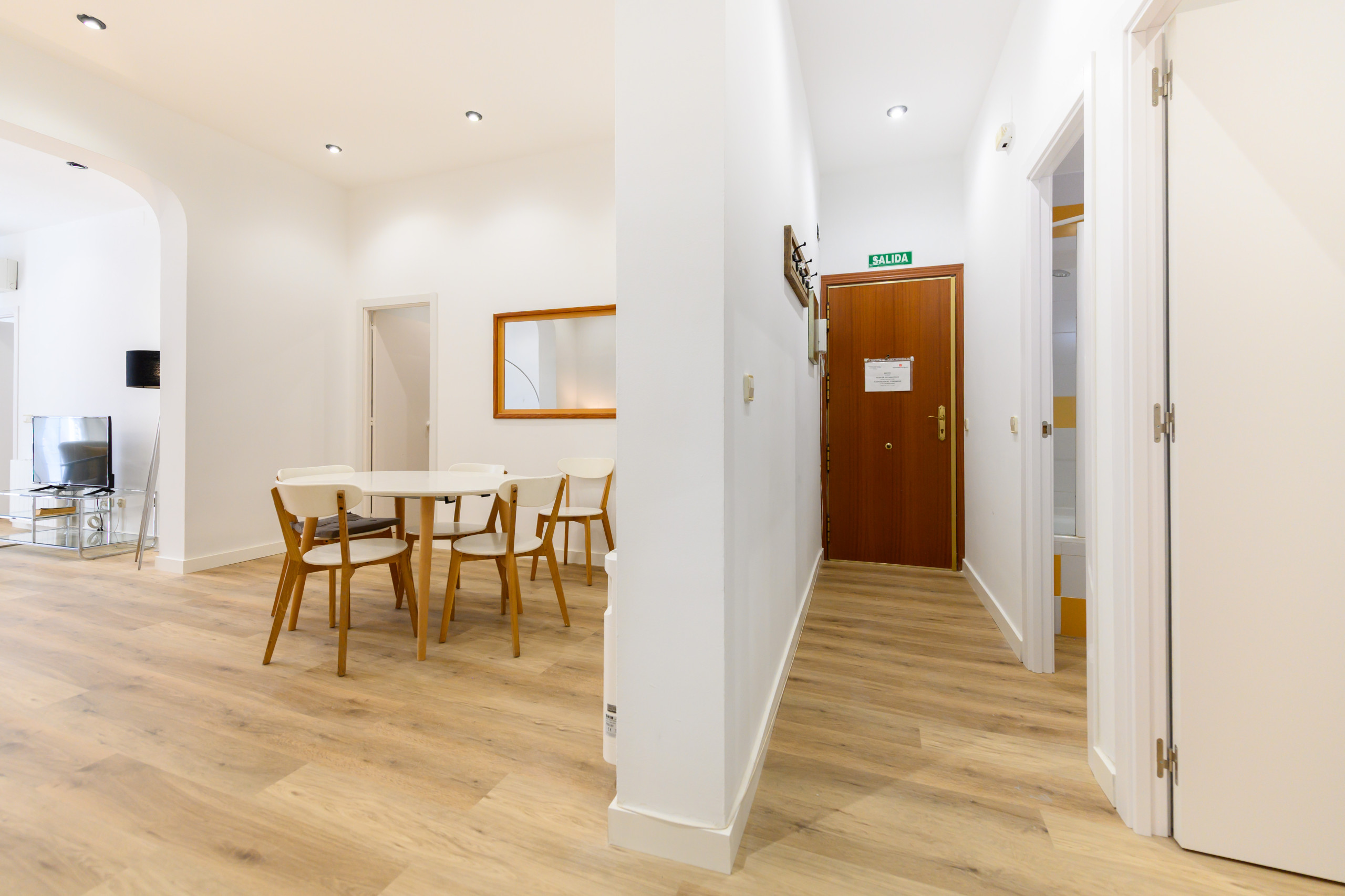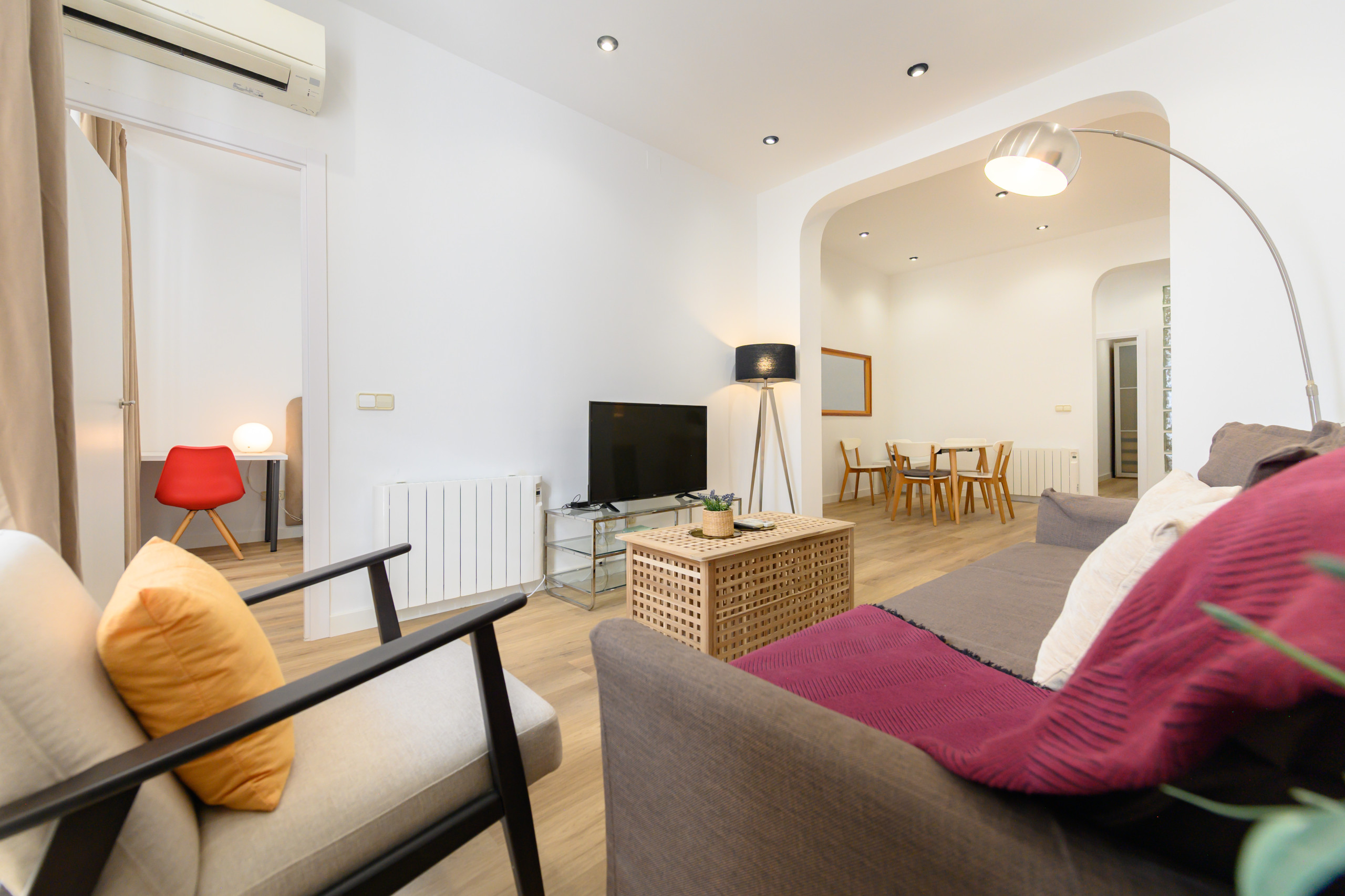 • Séjour spacieux et lumineux : Table à manger, canapé-lit, télévision, climatisation et chauffage.