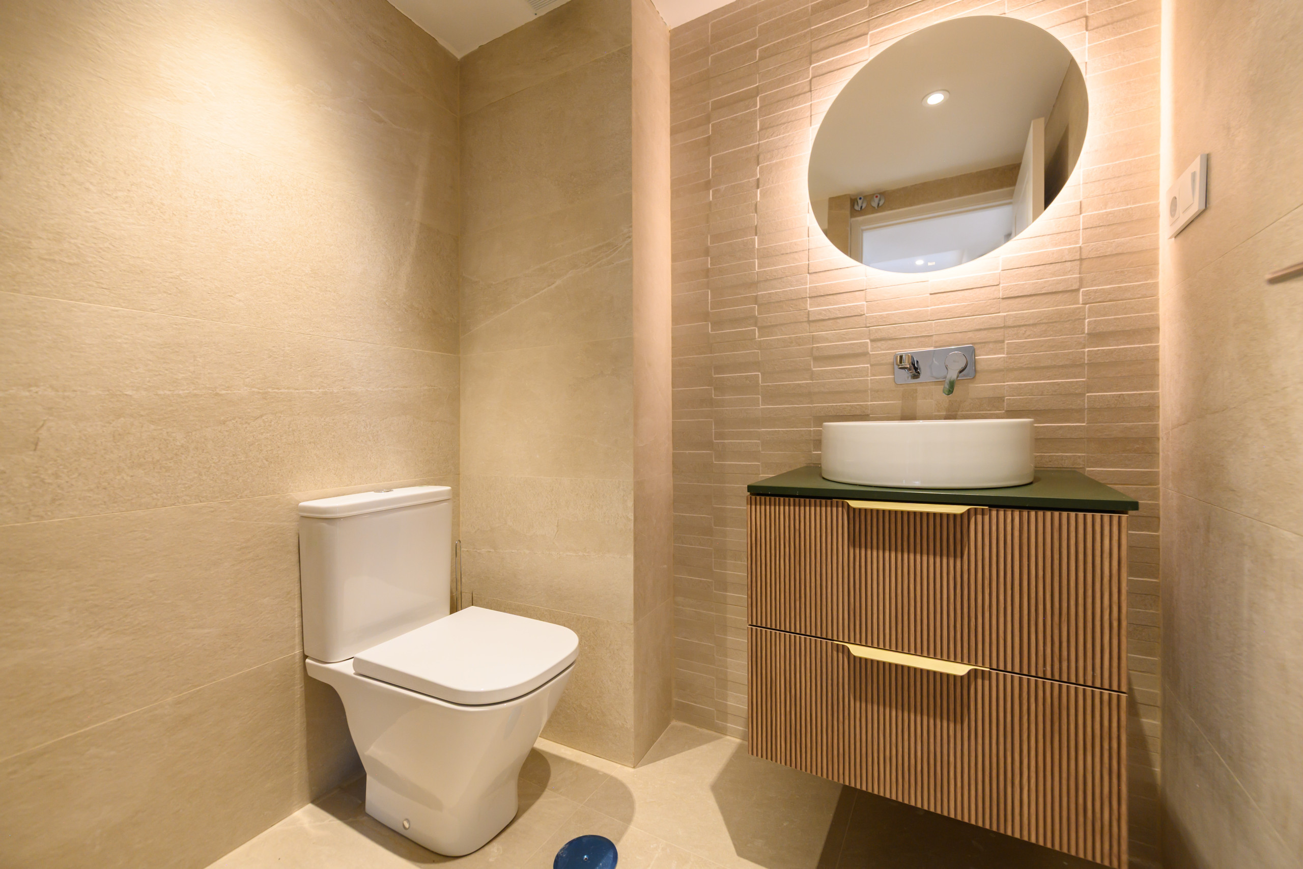 La cuisine est entièrement équipée, avec tous les appareils électroménagers et la vaisselle nécessaires au quotidien, ce qui permet de cuisiner confortablement sans avoir besoin d'ajouter quoi que ce soit. Sa conception fonctionnelle exploite au maximum l'espace, en conservant une esthétique moderne et ordonnée.