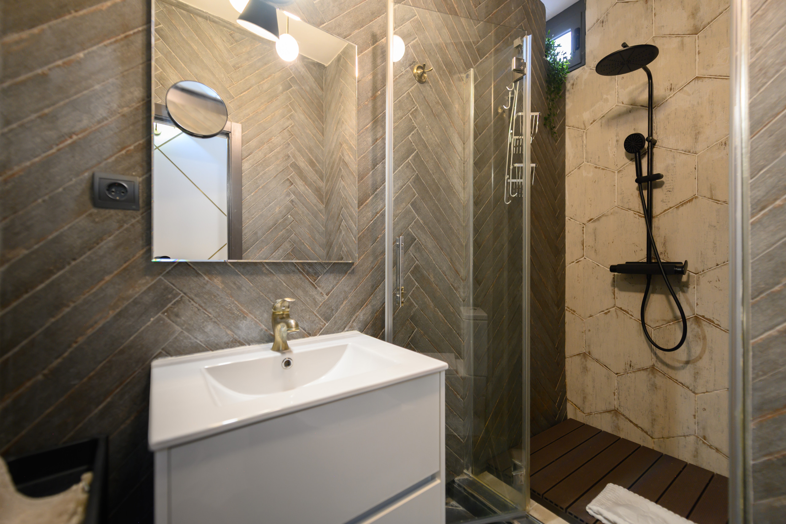 La salle de bain est conçue avec un style moderne et des matériaux de première qualité :