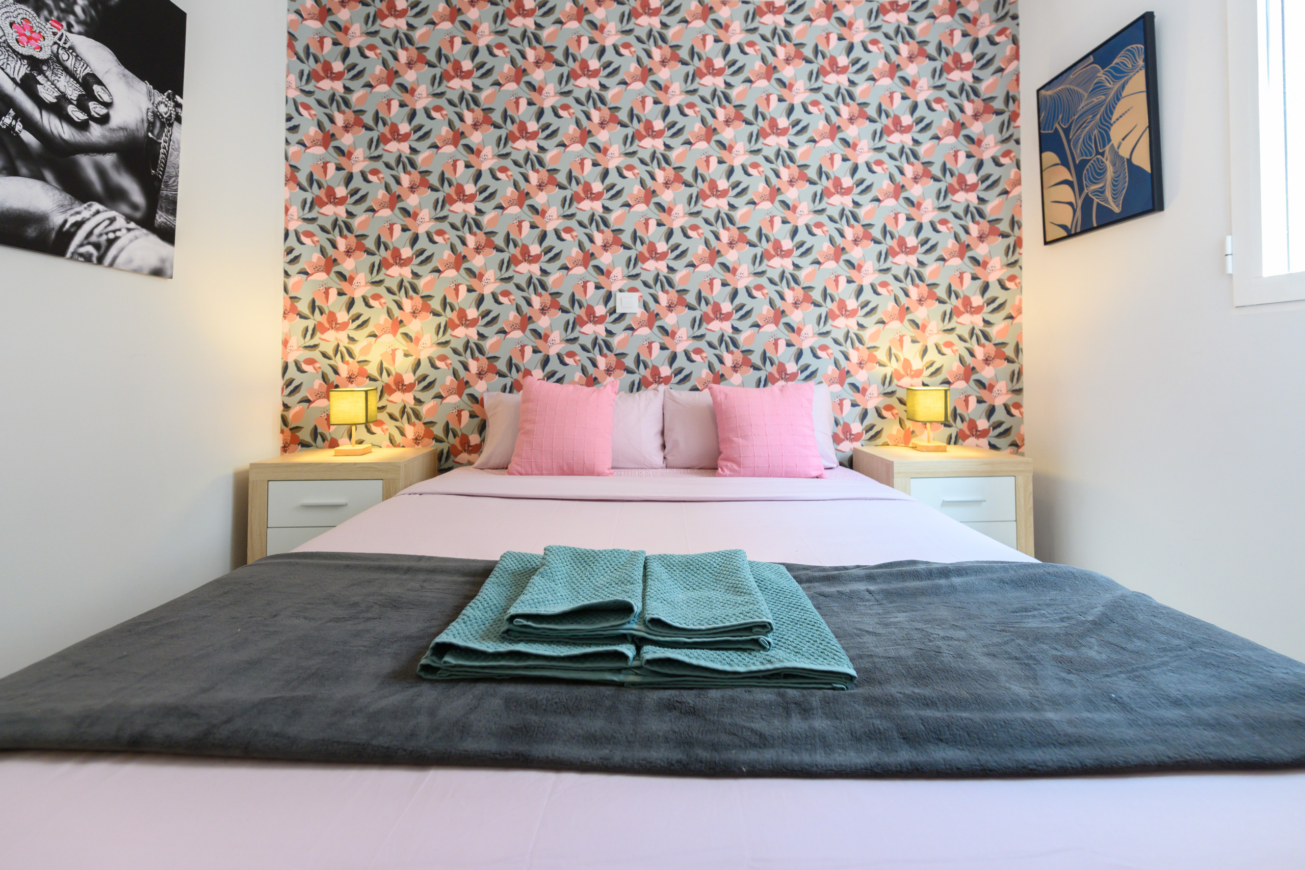 L'appartement dispose de deux chambres indépendantes, toutes deux avec des lits doubles et des armoires, offrant un espace de rangement suffisant pour des séjours courts ou prolongés. Les chambres sont soigneusement conçues pour offrir un maximum de repos, dans un environnement confortable.