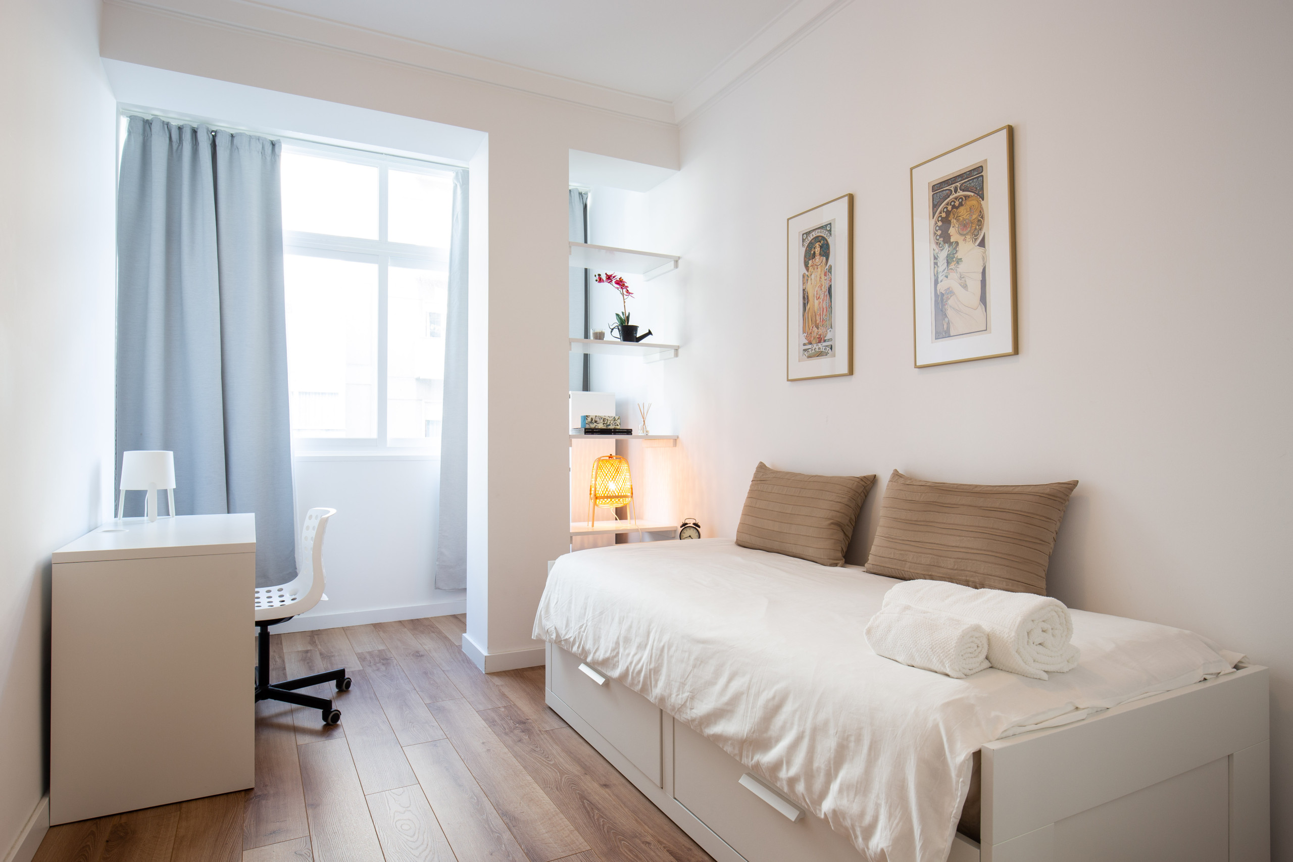 This is an apartment with two bedrooms, a light-filled living room and a very relaxing environment. In this typical Lisbon neighbourhood, you will find everything you need right at your doorstep. Cable TV and WiFi Internet are included at no extra cost. All bed and bath linen is equally included.