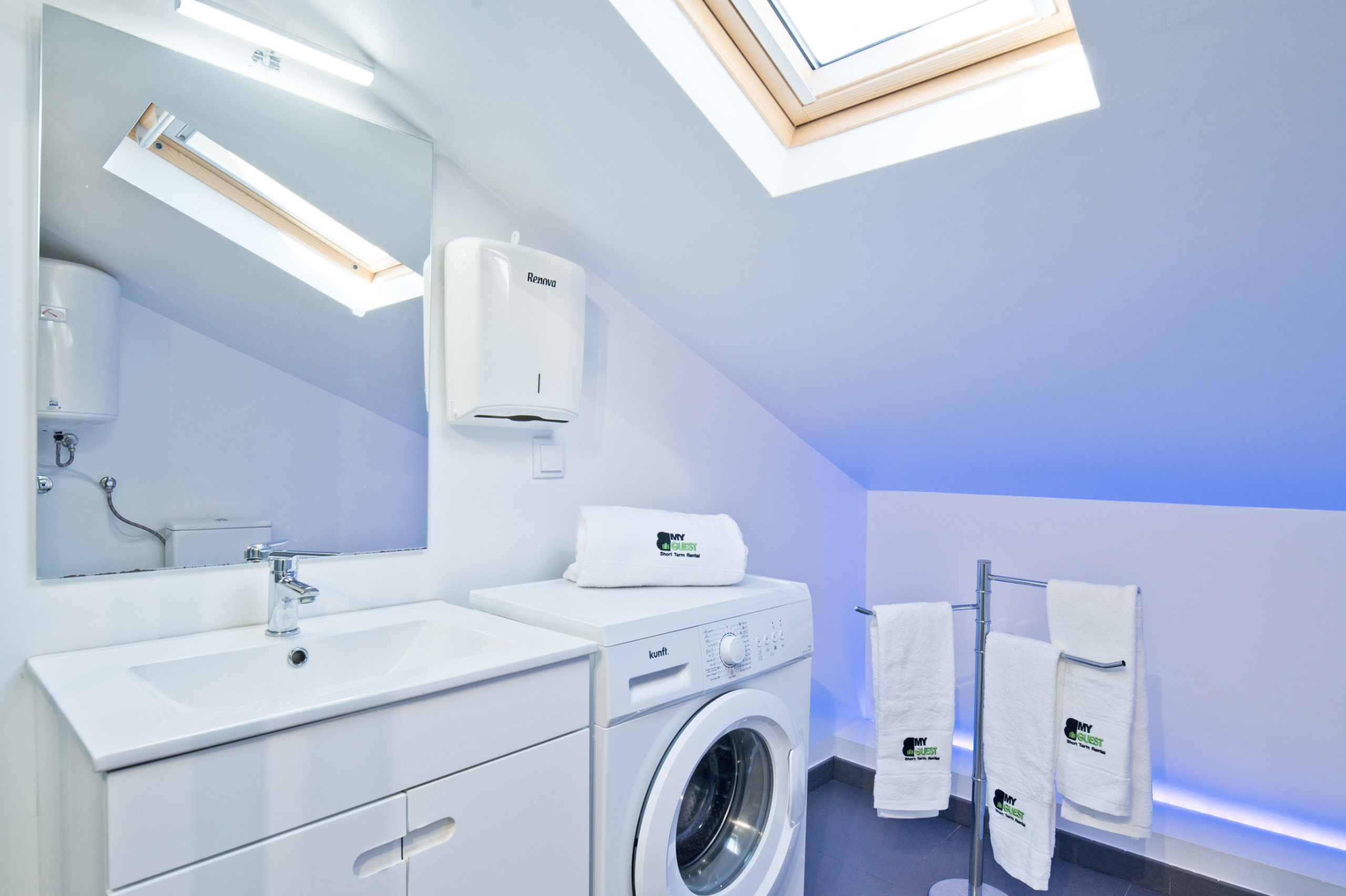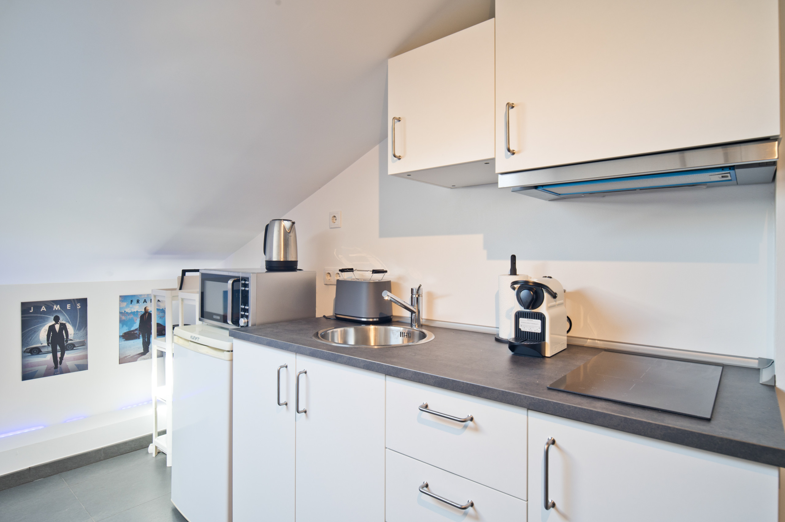 A kitchenette, está equipada com frigorífico, microondas, forno, congelador, máquina de lavar roupa, louça/talheres, utensílios/cozinha, cafeteira, torradeira e jarro eléctrico.