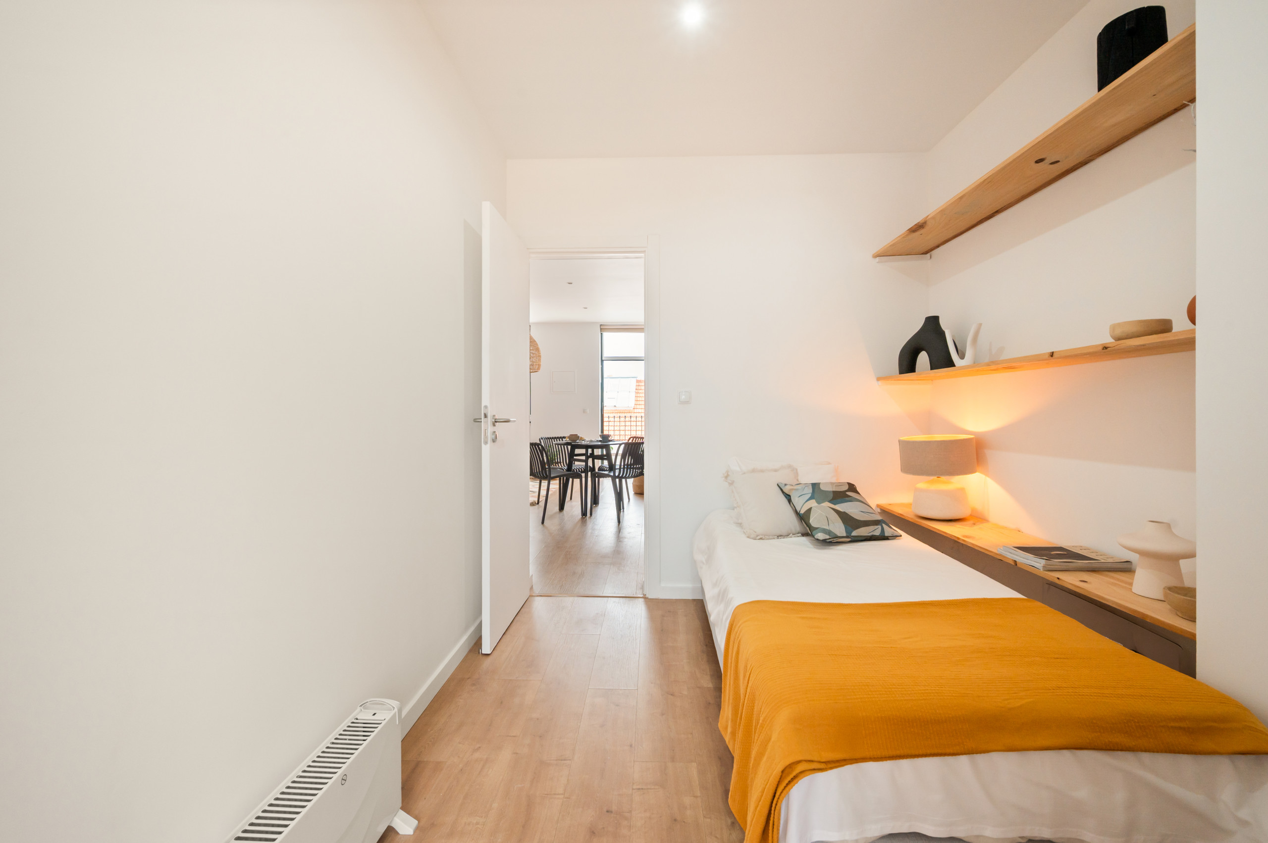 O apartamento dispõe de dois quartos: Um quarto de casal com casa de banho privativa, garantindo maior conforto e privacidade e um quarto individual, ideal para uma pessoa ou criança.