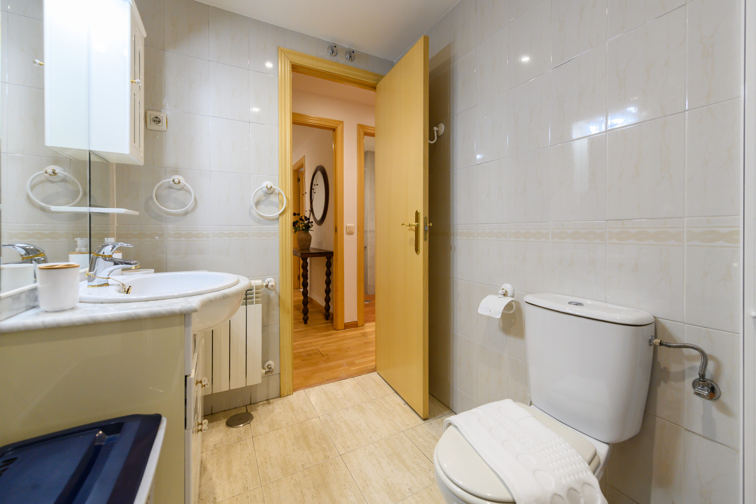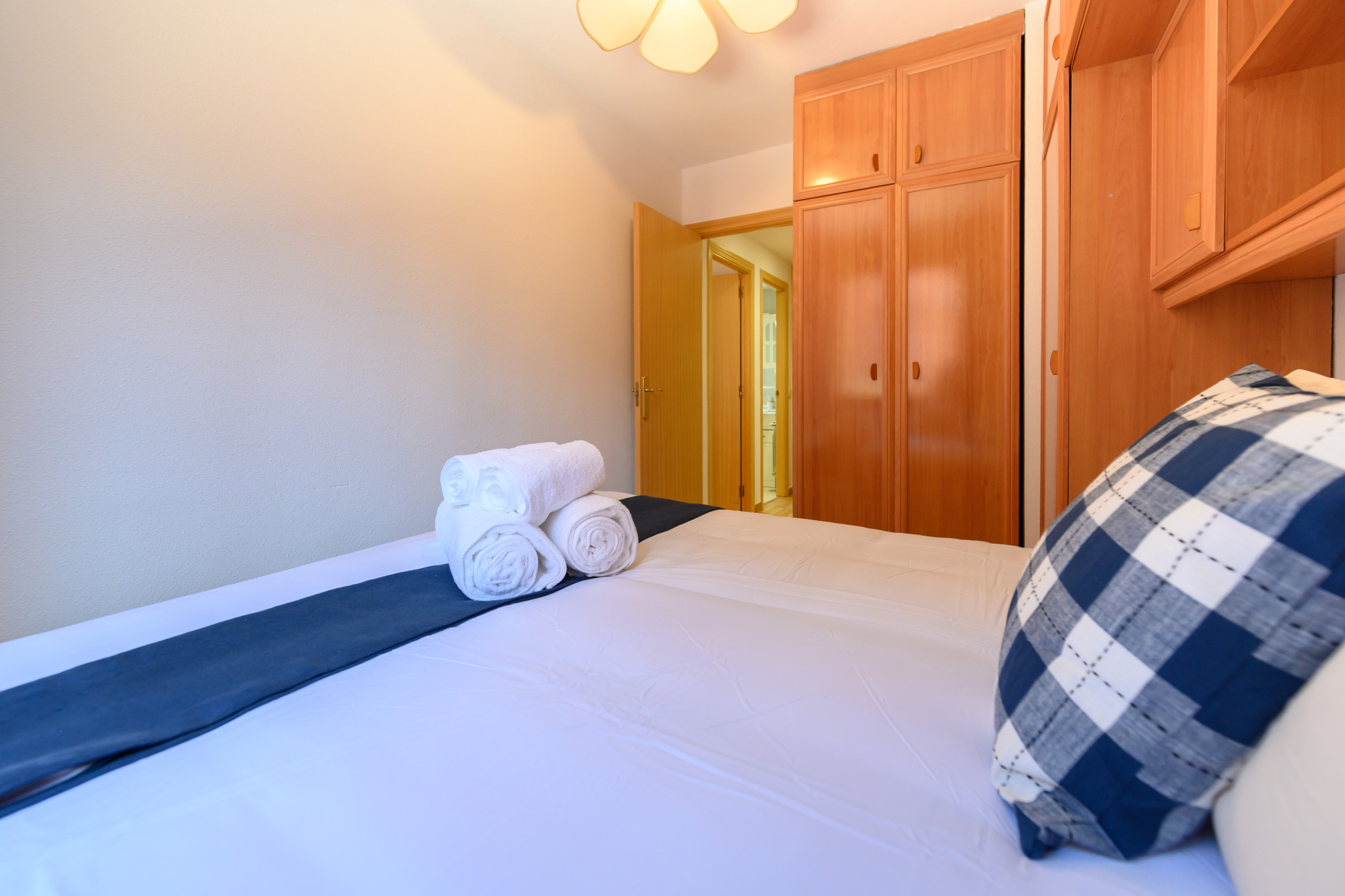Dispõe de elevador, jardim, máquina de lavar roupa, ferro de engomar, acesso internet (wifi), aquecimento de bomba de calor, ar-condicionado, piscina comunitária, estacionamento ao ar livre num edifício perto, 1 Televisão.