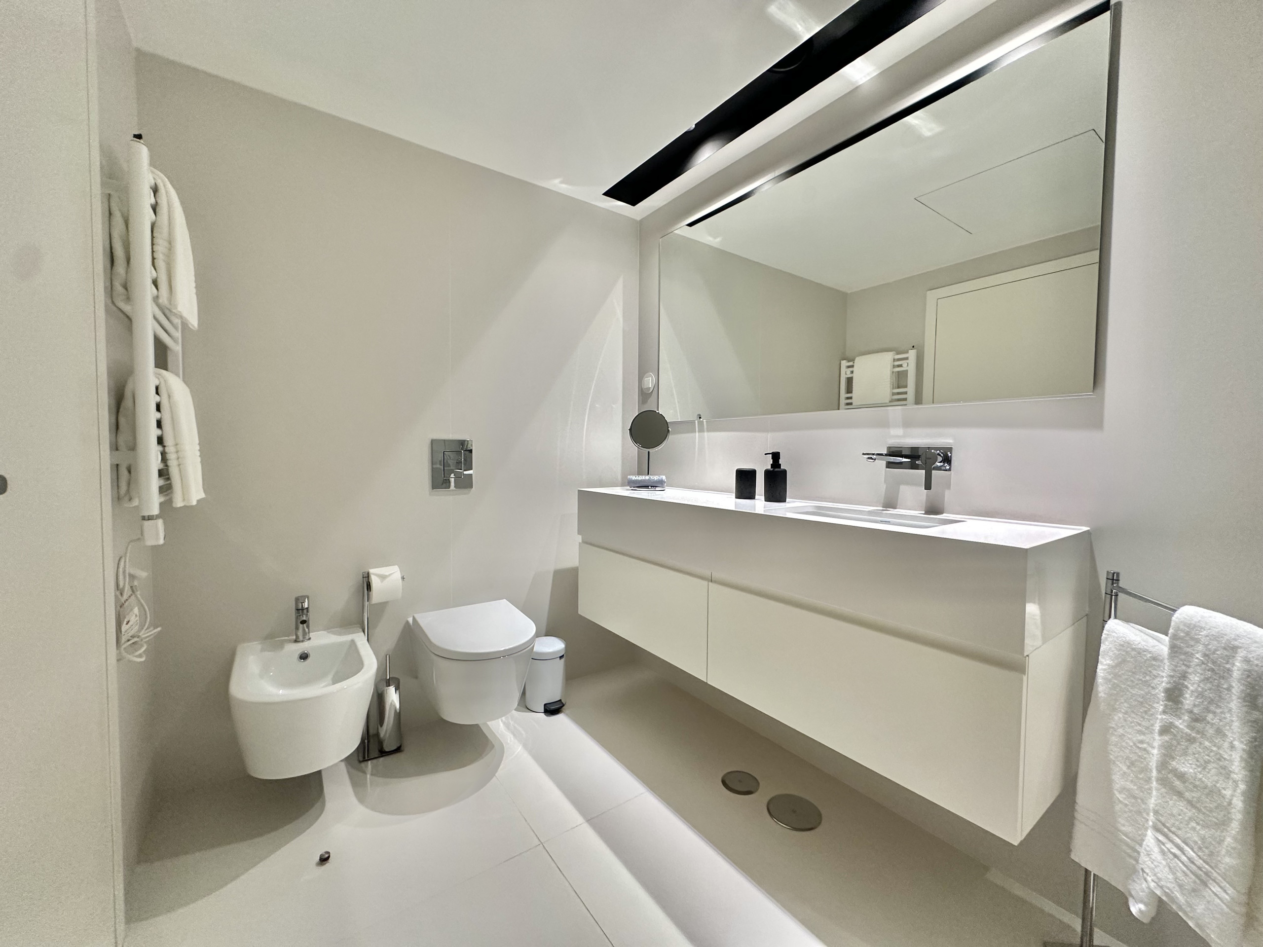 O apartamento está mobilado com bom gosto, é uma nova construção e tem 170 m².