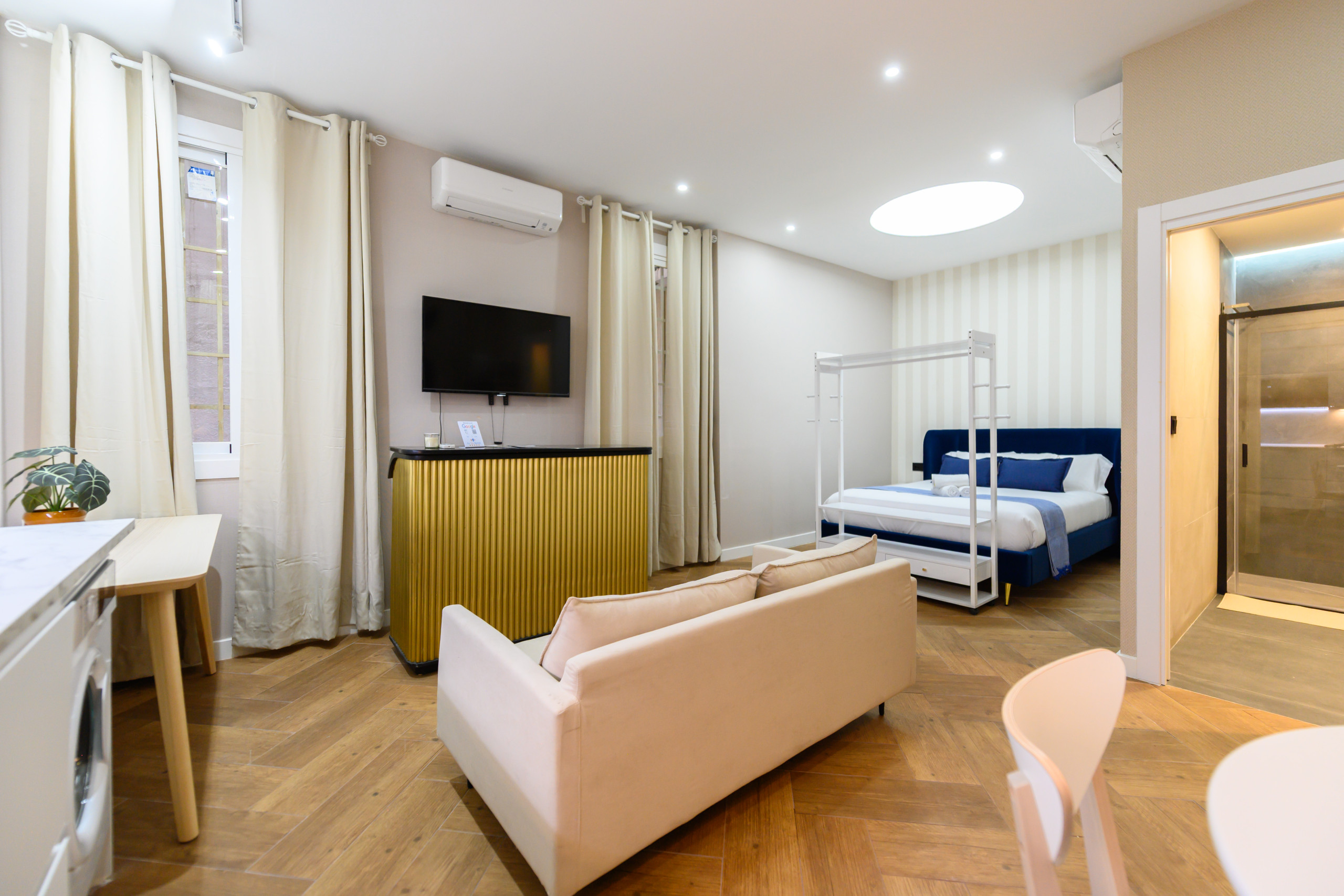 Dispõe de elevador, máquina de lavar roupa, ferro de engomar, acesso internet (wifi), aquecimento de bomba de calor, ar-condicionado em todo o alojamento, estacionamento ao ar livre num edifício perto, 1 Televisão.