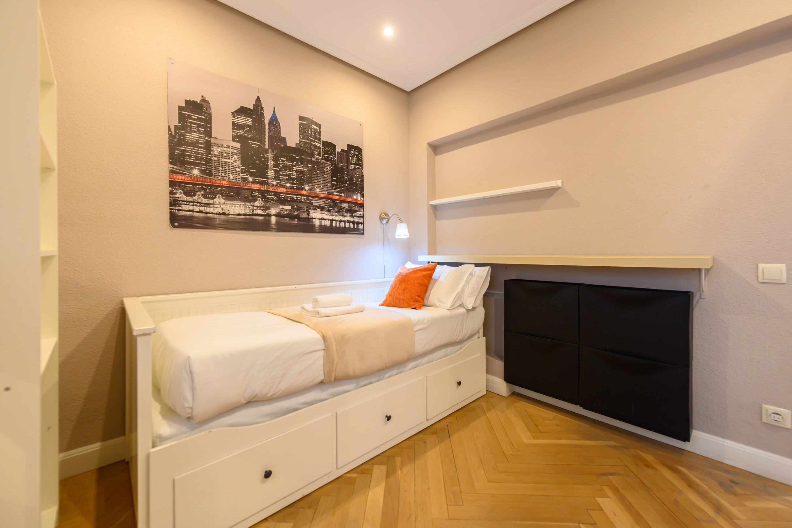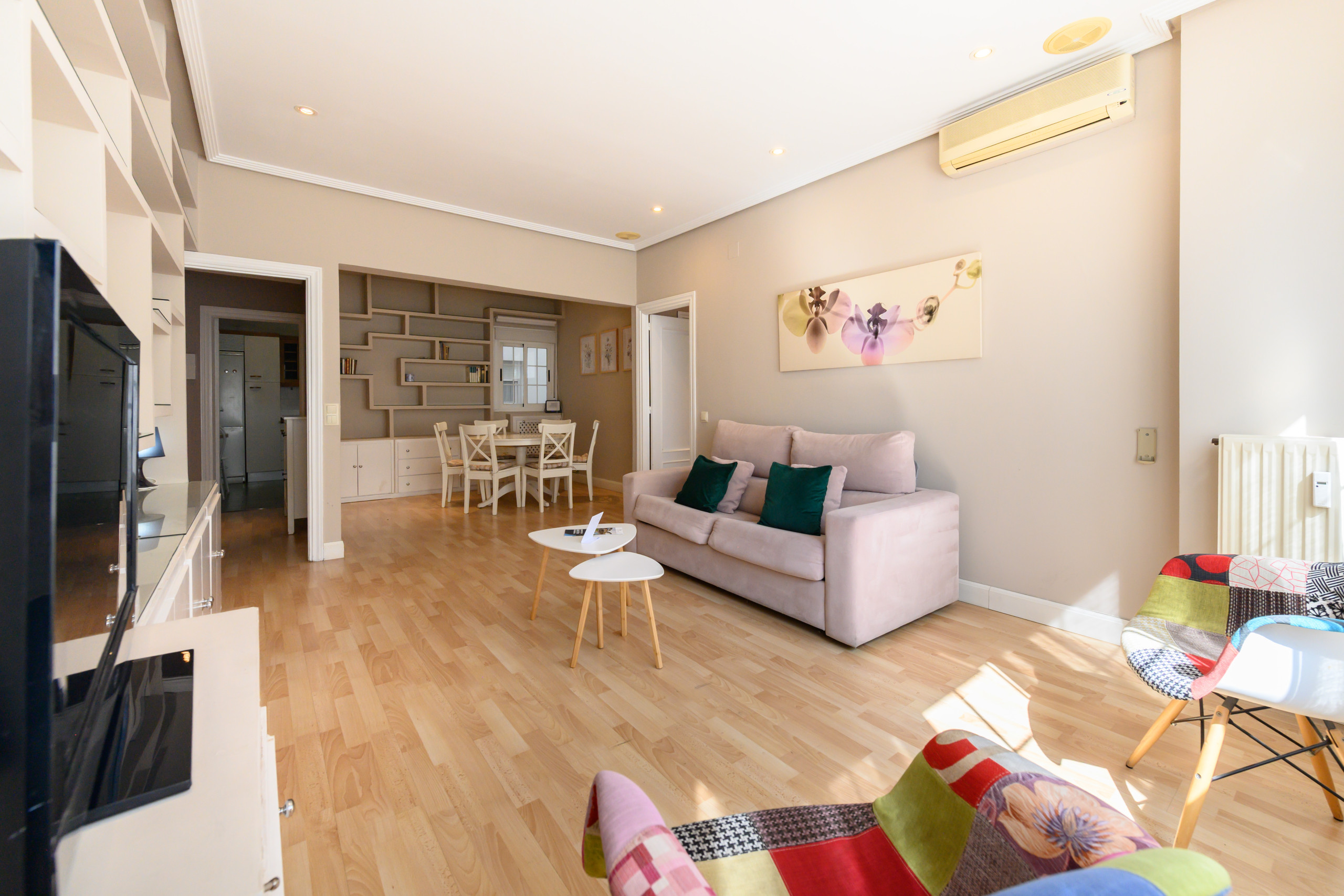 The apartment is located 5 min from Calle Serrano, here we can find the best clothing brands in the world, distinguished restaurants of the capital