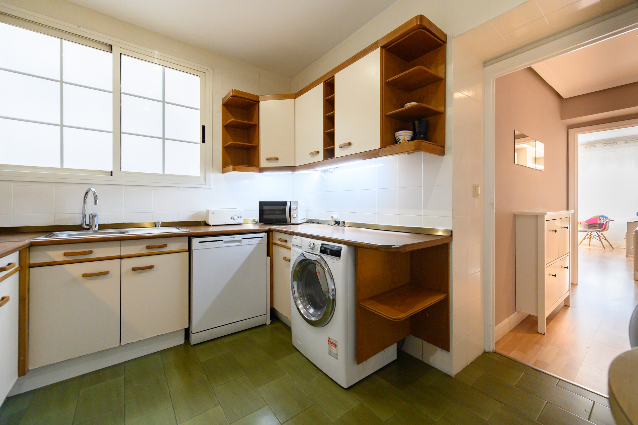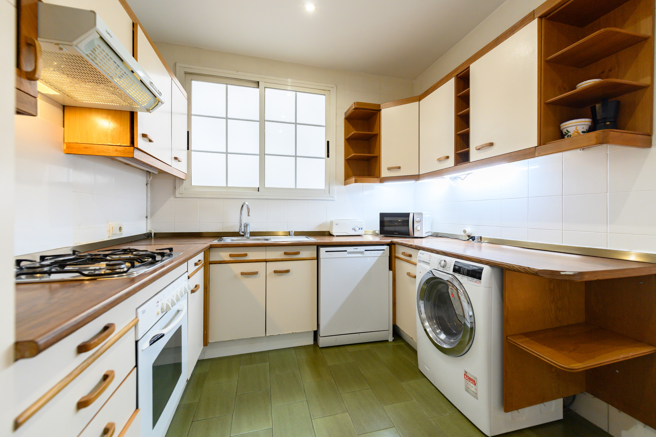 Spacious independent kitchen, with ceramic hob, fridge, microwave, oven, freezer, washing machine, crockery/cutlery, kitchen utensils, coffee maker, toaster, kettle. Absolutely everything for a very pleasant stay