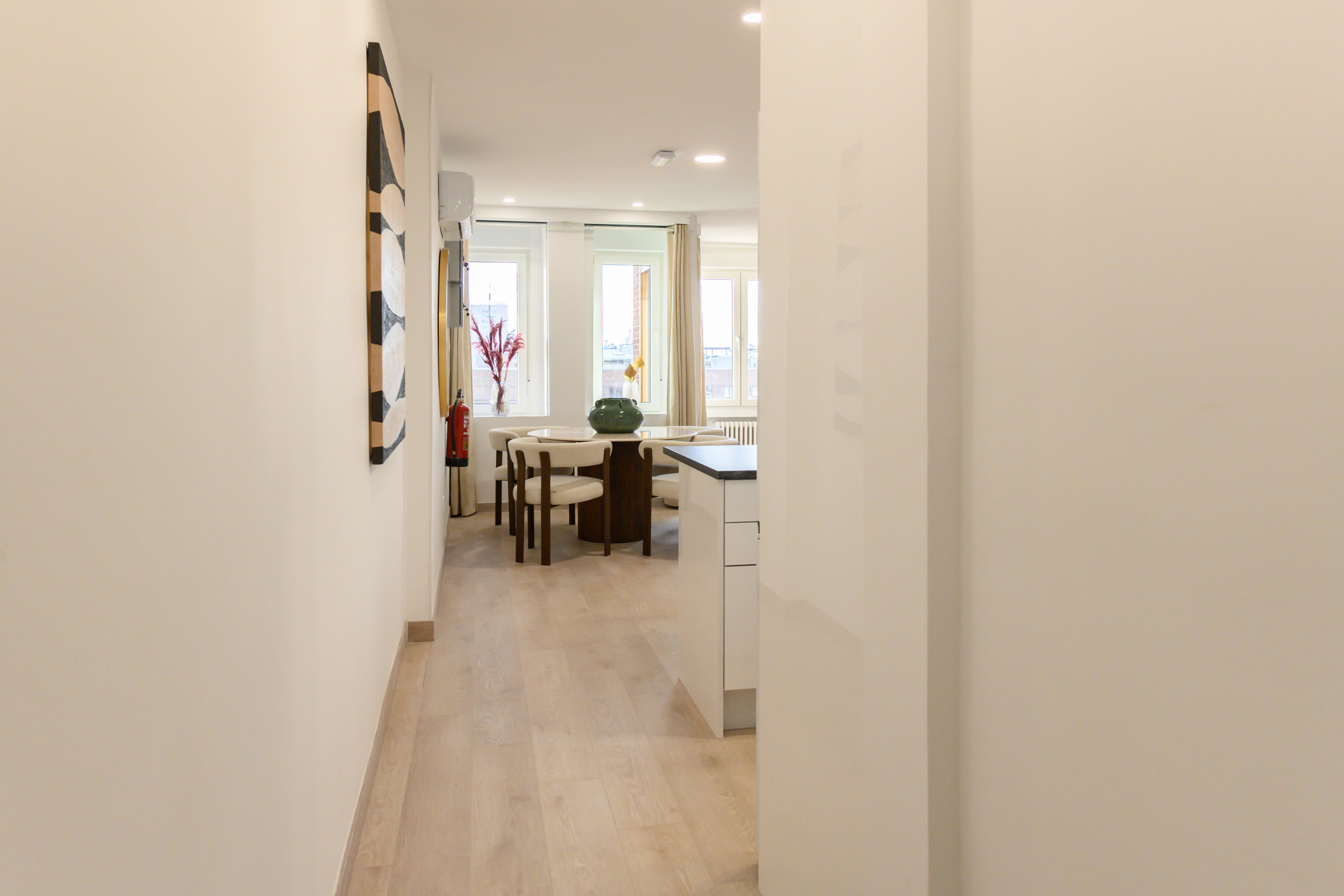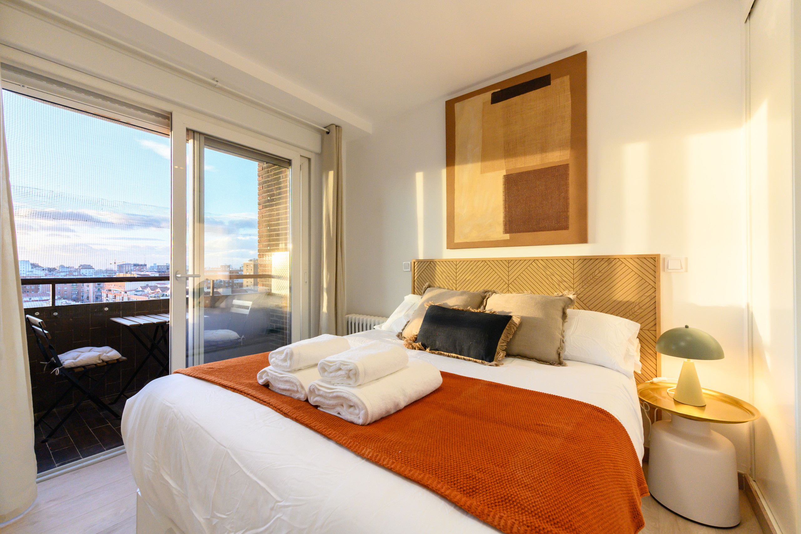 In short: A spectacular and modern apartment, fully furnished and equipped, very bright, with two bedrooms and a private terrace offering beautiful city views. A perfect option for those seeking a luxurious, comfortable, quiet, and well-connected stay in Madrid.
