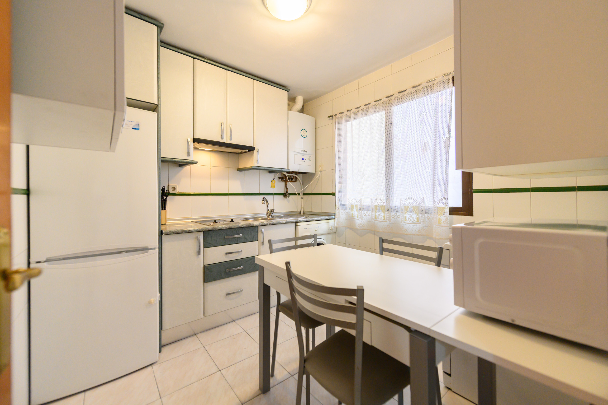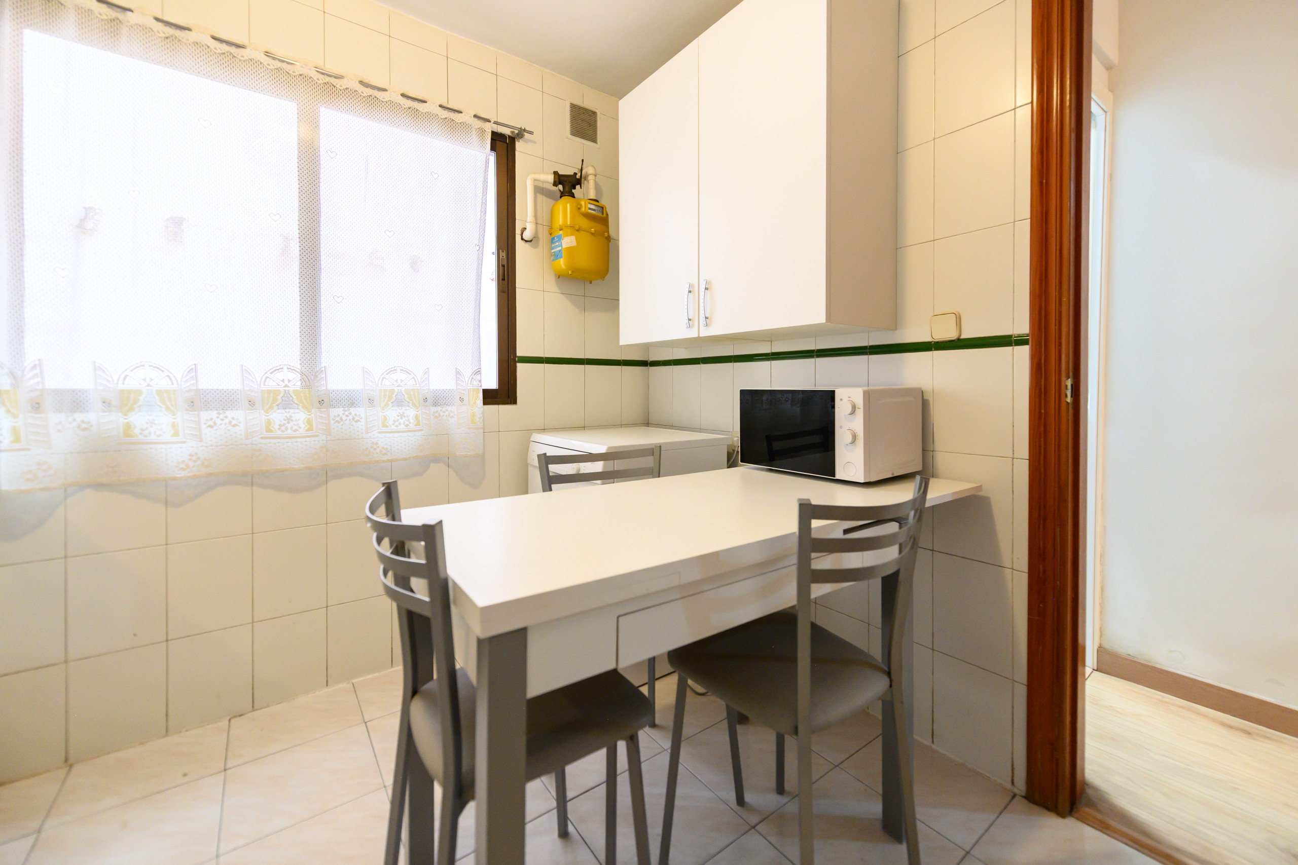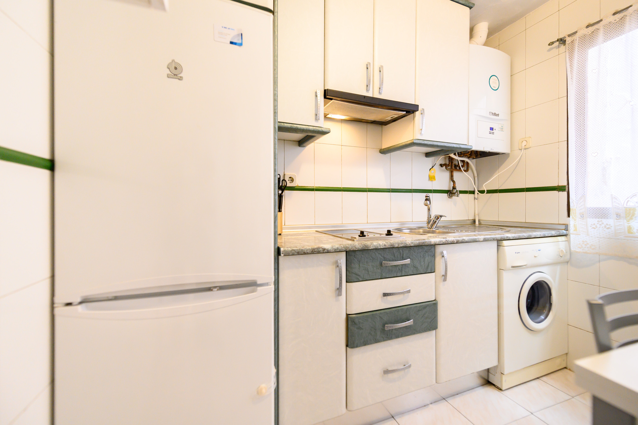 • Fully equipped kitchen with refrigerator, microwave, washing machine, dishwasher, dining table, kitchenware, and ample storage space.