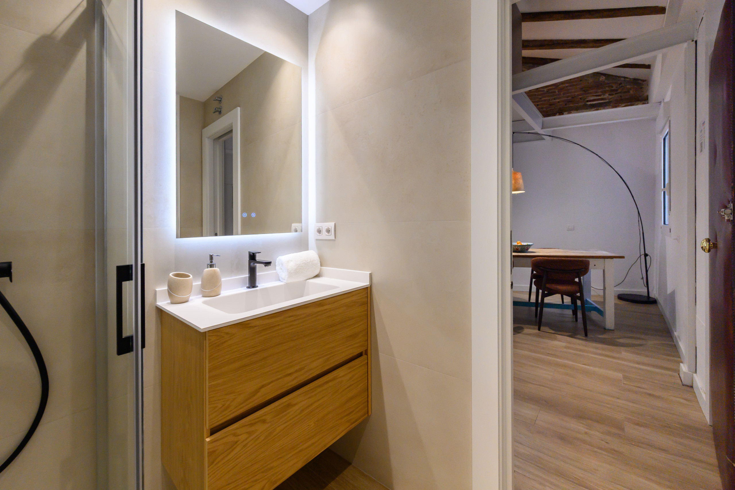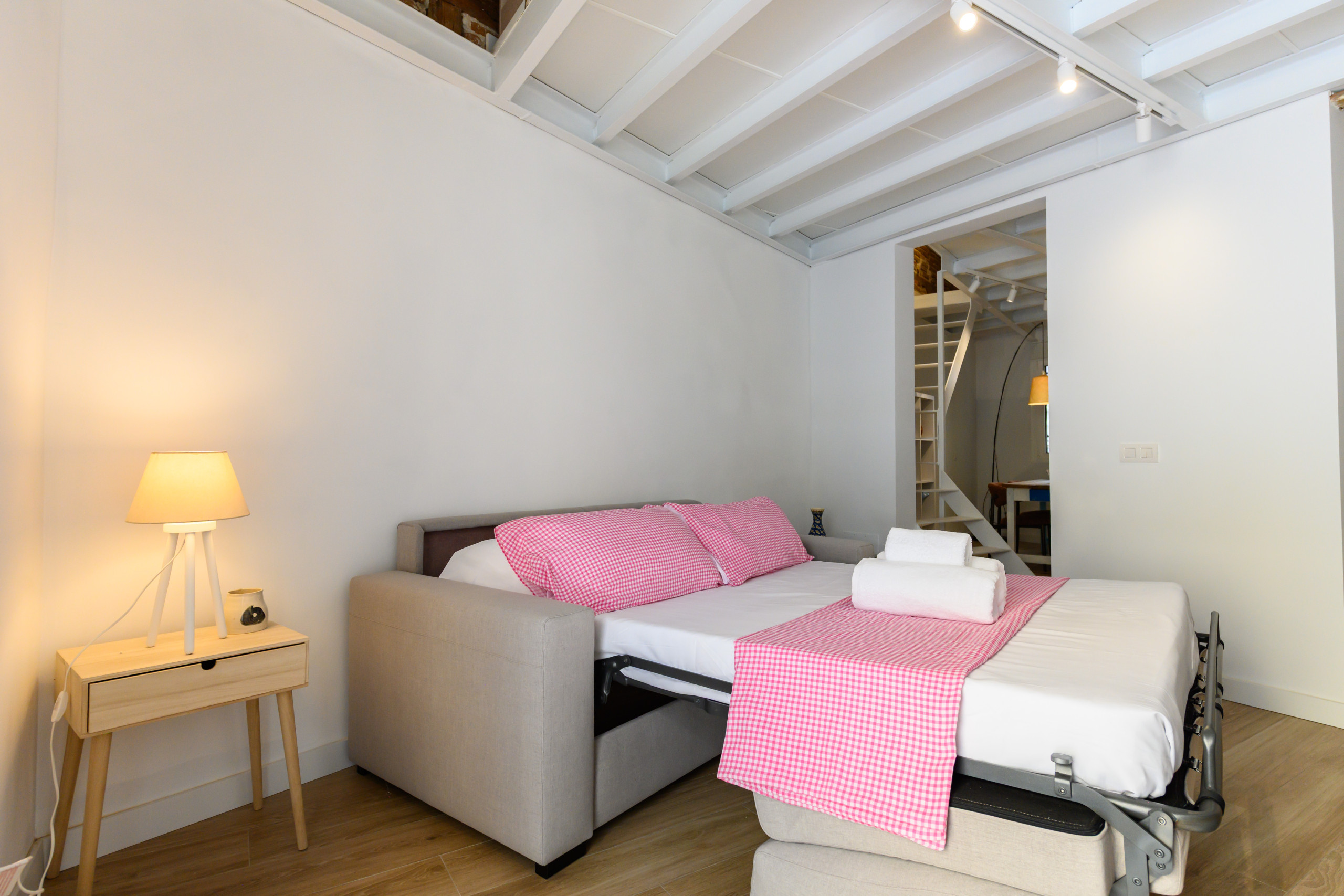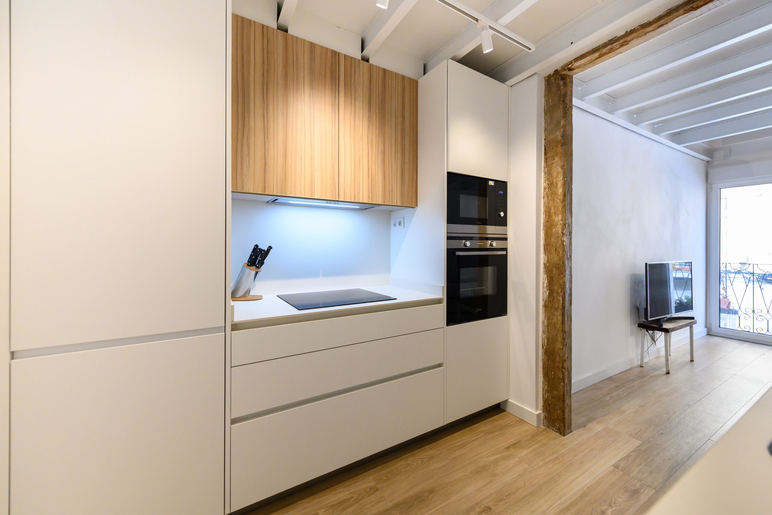 The apartment is located on Callejón de San Rafael, in the Berruguete neighborhood of the Tetuán district. It is a quiet residential area, well-connected to the entire city, offering a balanced combination of urban life and a pleasant neighborhood atmosphere. The neighborhood stands out for its family-friendly atmosphere and wide range of services: traditional and modern shops, supermarkets, pharmacies, cafes, and restaurants. Everything you need for a comfortable and convenient stay in Madrid.
