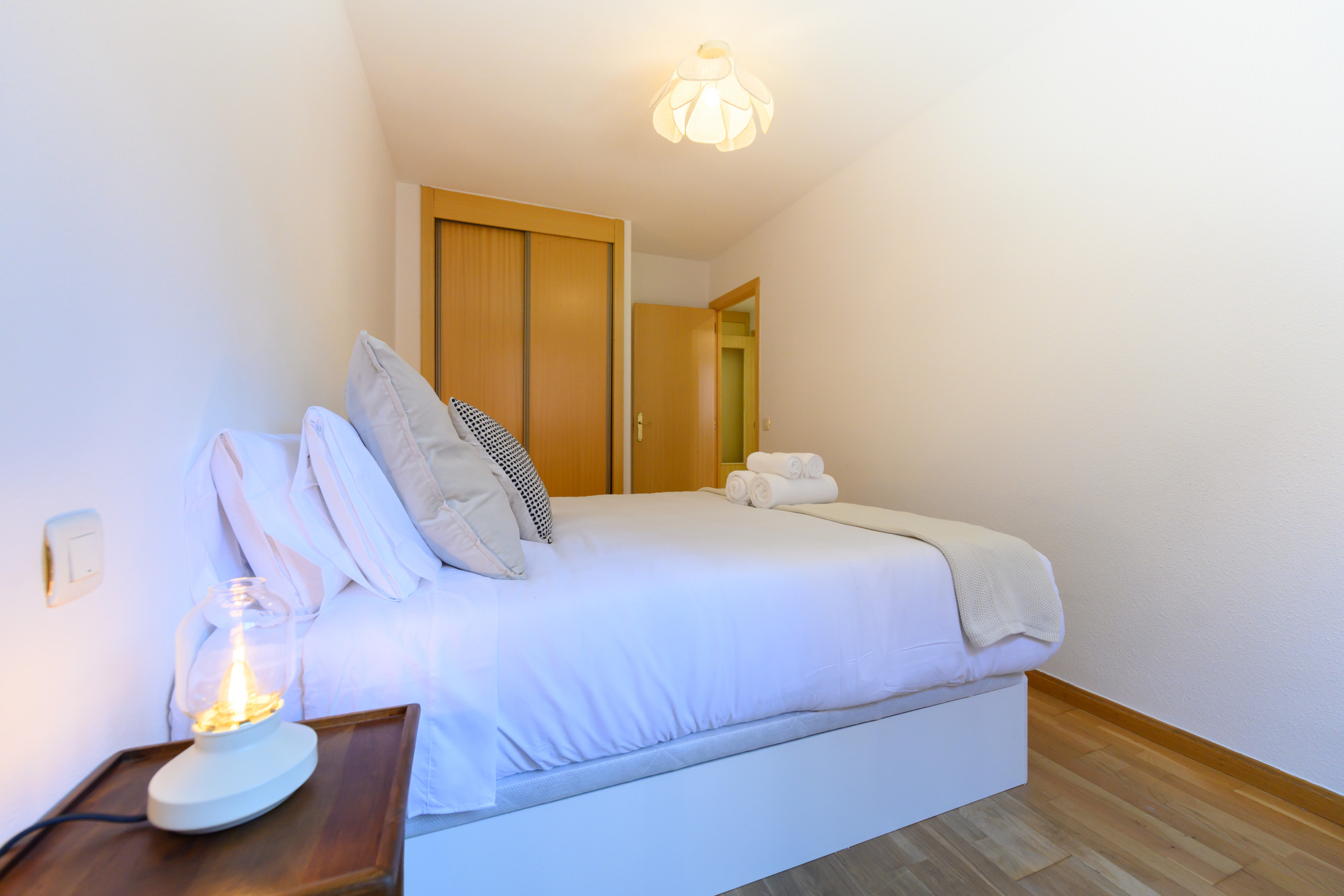 It has two bedrooms, both with built-in wardrobes offering great storage capacity. One of them also has air conditioning, providing comfort during the warmest months.