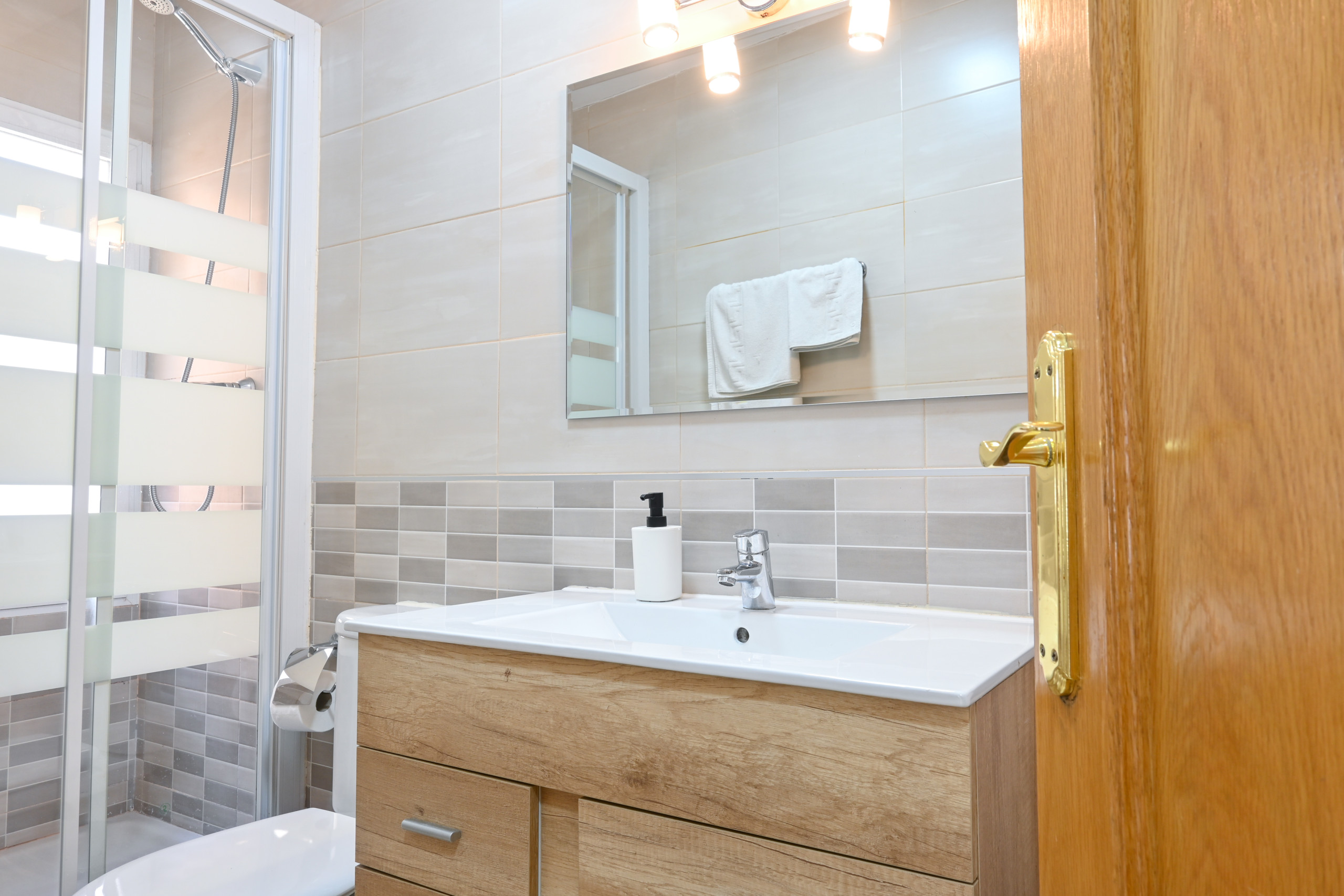 The bathroom features a spacious shower tray and all the necessary amenities for your daily hygiene.
