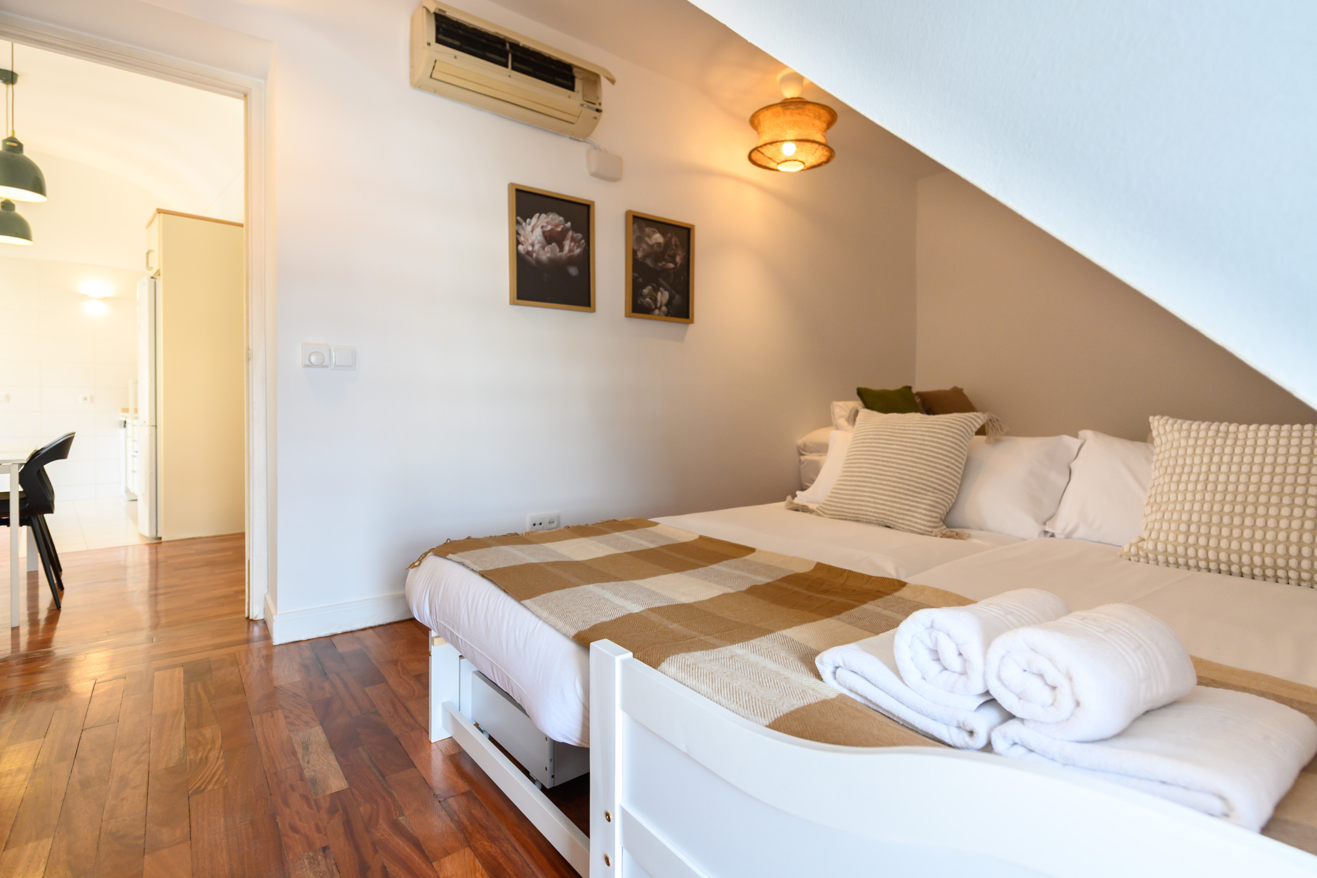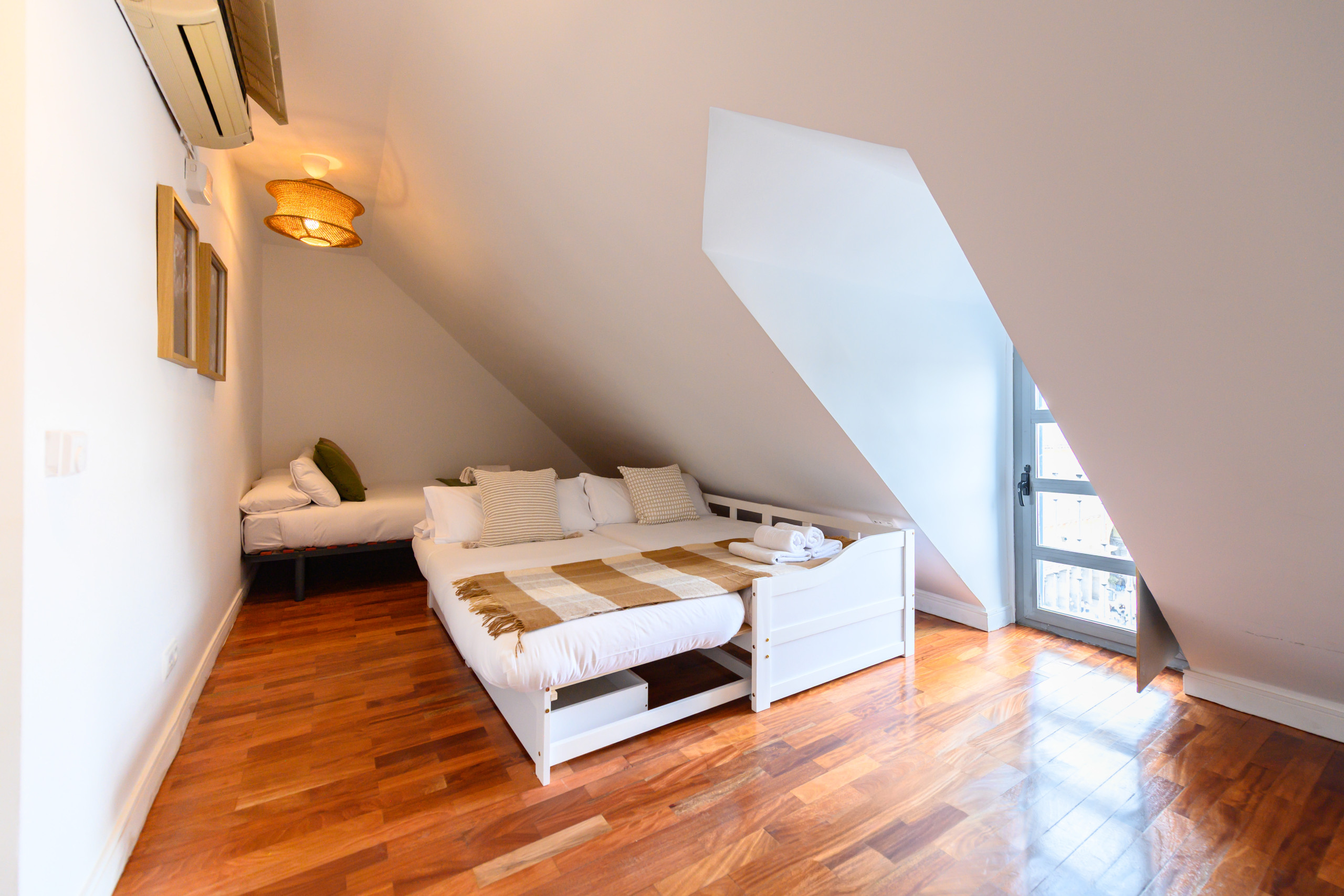 - Bedroom 1: With two double beds, built-in wardrobe, air conditioning, heating, and a balcony with stunning views of Plaza Mayor.