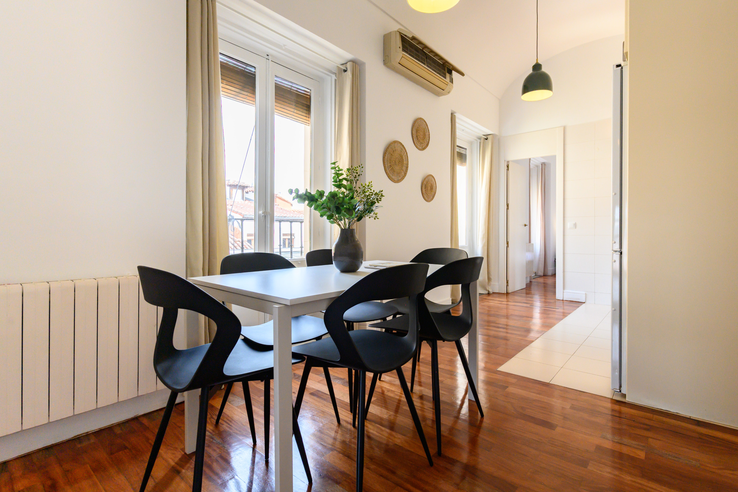 - Terrace: One of the apartment's greatest assets is its large terrace, furnished with a table and chairs, offering spectacular views of Plaza Mayor and the entire city from the heart of Madrid's historic center.