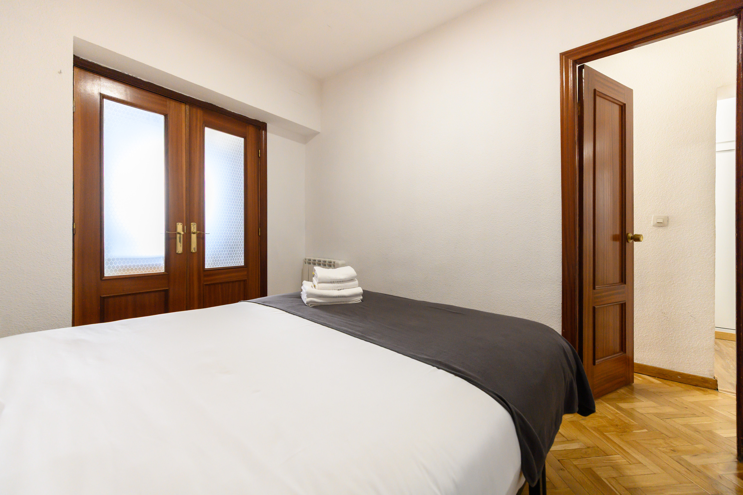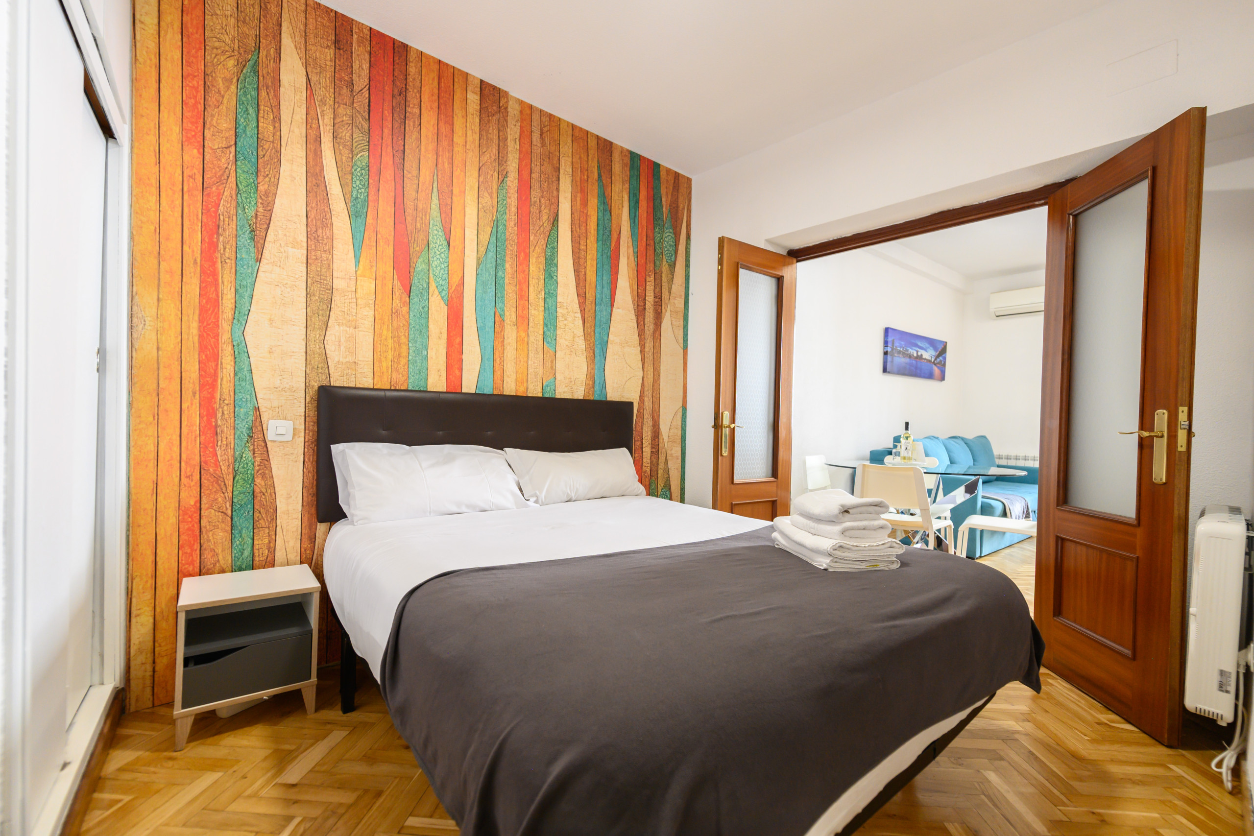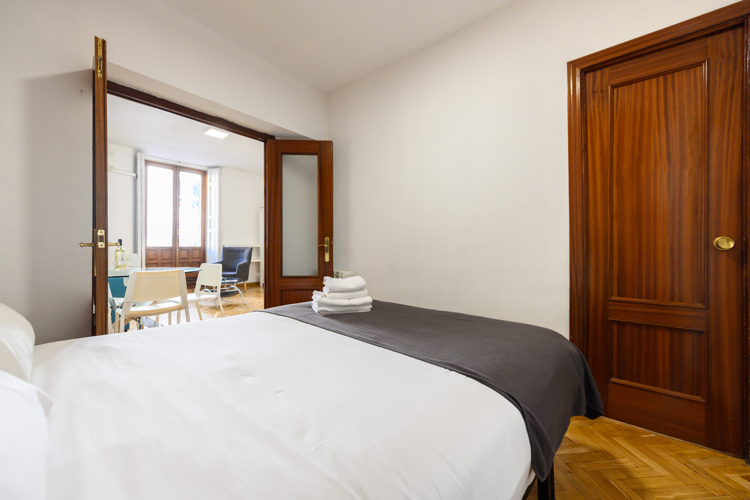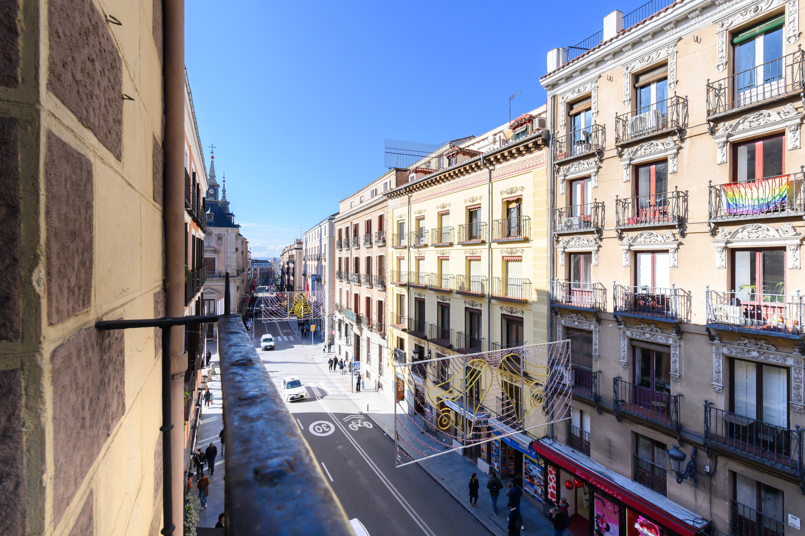 Temporary rent. Expanded exterior bedroom of a dormitory in the Center of Madrid, located on Calle Mayor, next to Plaza Mayor and Mercado de San Miguel, ideal for enjoying the city with family or friends.