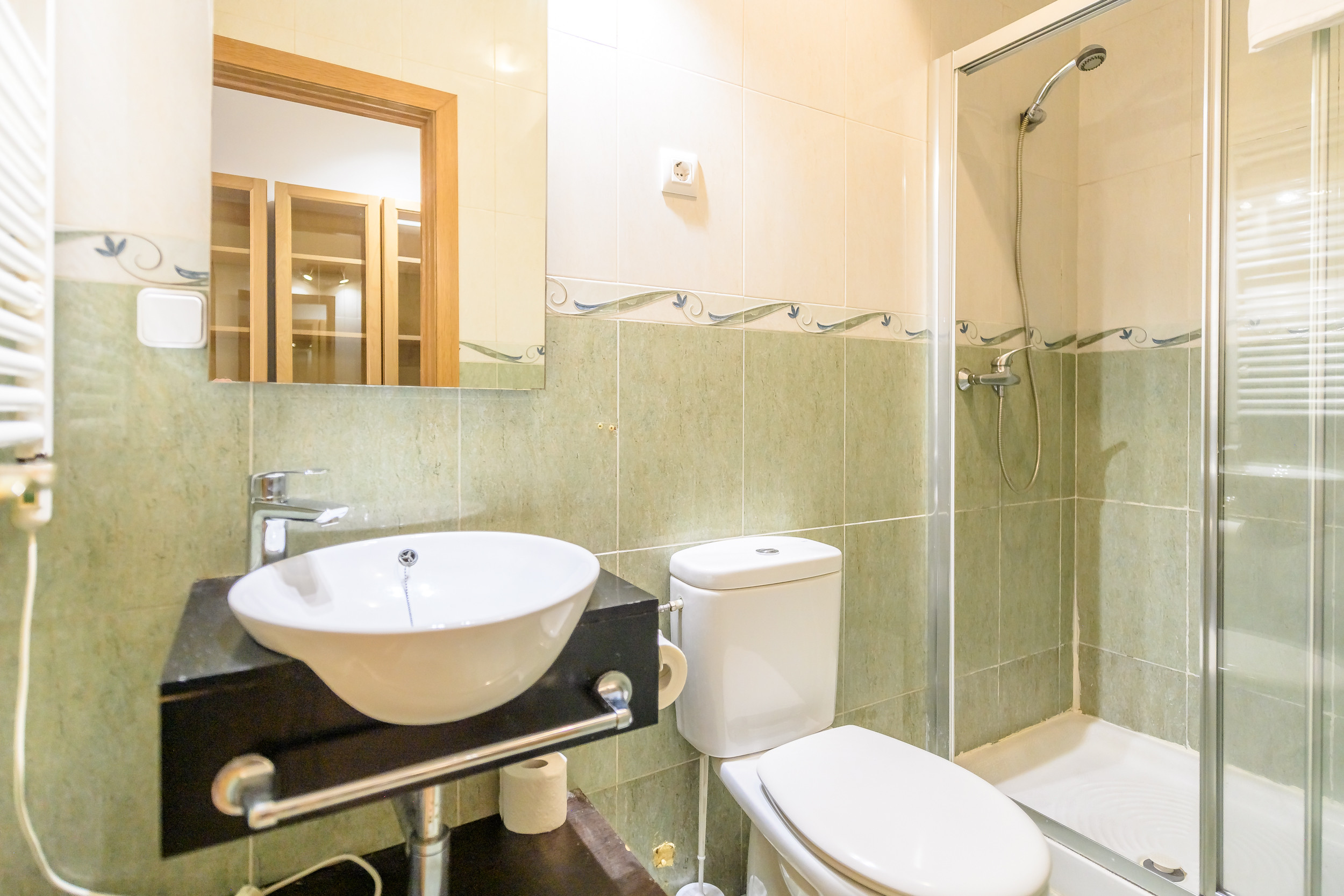 The studio has an independent bathroom, ensuring privacy and comfort. You'll find a shower, a washbasin, and all the necessary amenities.